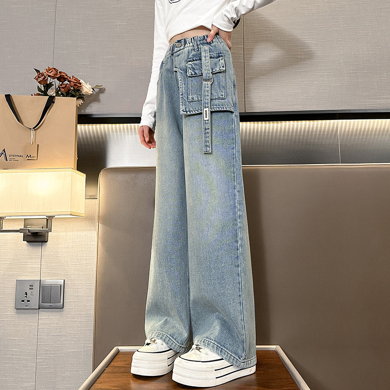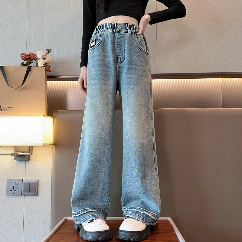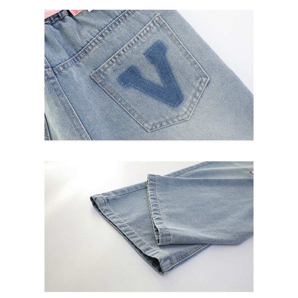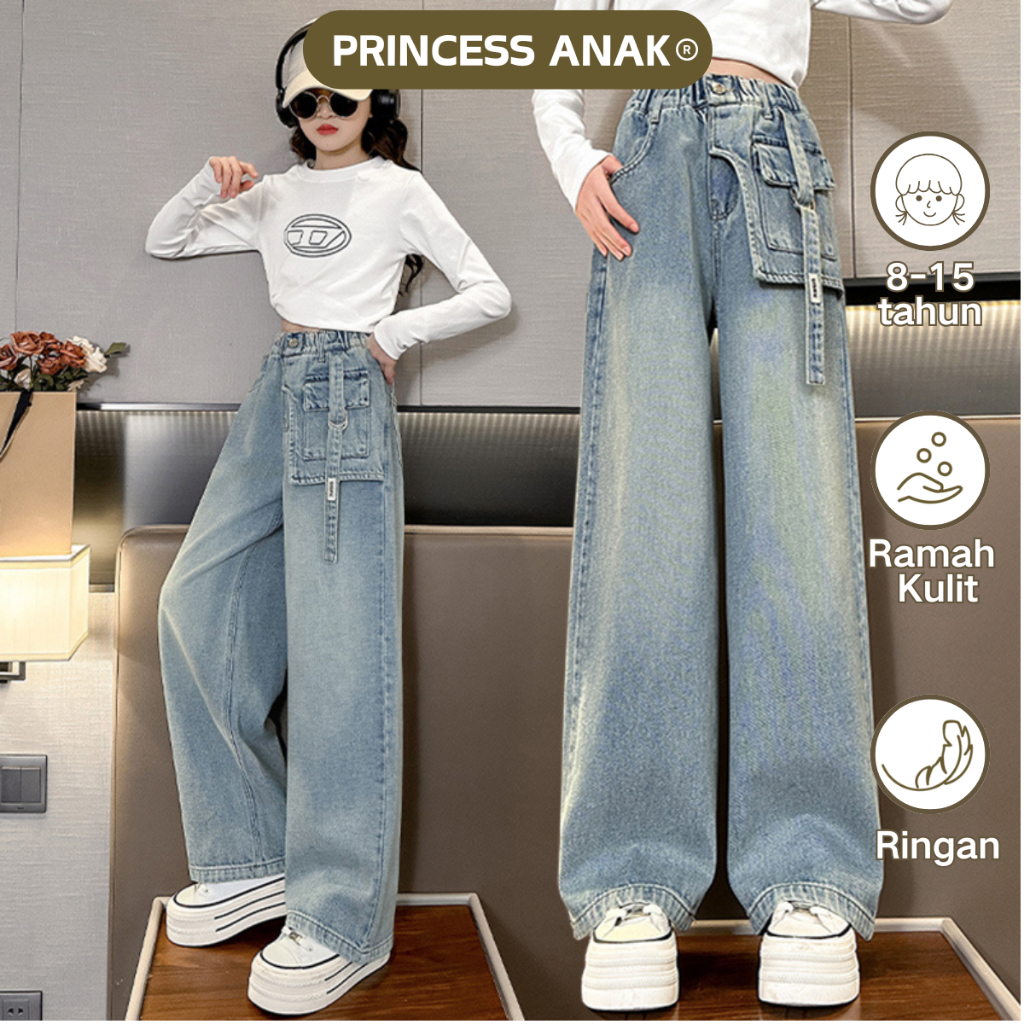 Princess Anak 8-15 Tahun Celana Jeaans Wanita Highwaist Kulot Jeans Pinggang Yang Dapat Diisesuaikan High Waist Kulot Je