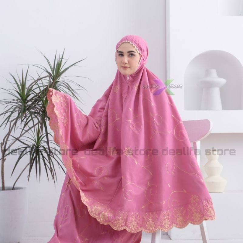 DEALIFA Mukena Dewasa Gracella Ada Tas Bunga Teratai Full Bordir Katun Premium
