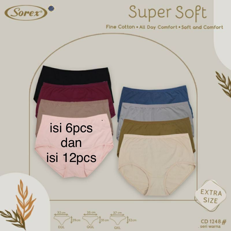 lusinan 12pcscelana dalam wanita jumbo sorex 1248 bercutting maxi super soft EQL-4L, QQL-5L,QXL-6L