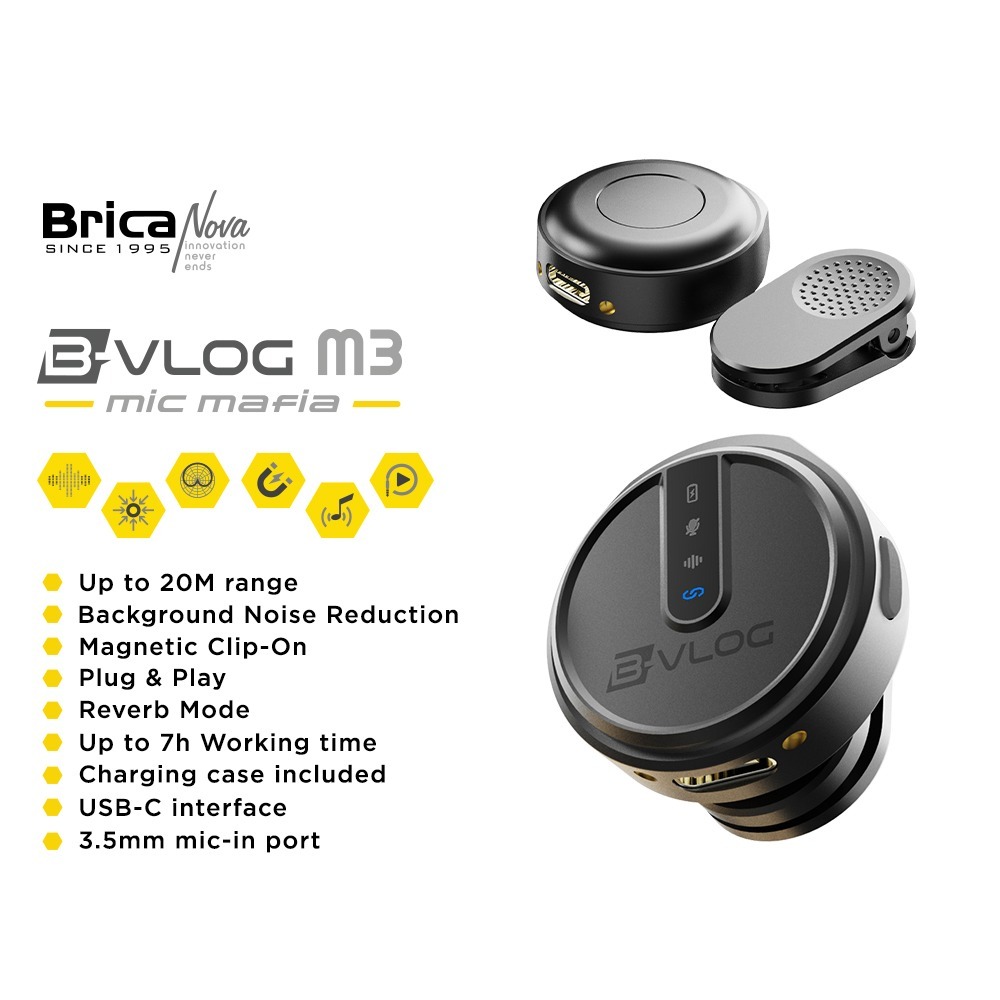 Brica B-VLOG M3 Wireless Microphone Clip On Mic Vlog with Charging Case BVLOG M3 for Camera , Iphone Lightning , USB Typ