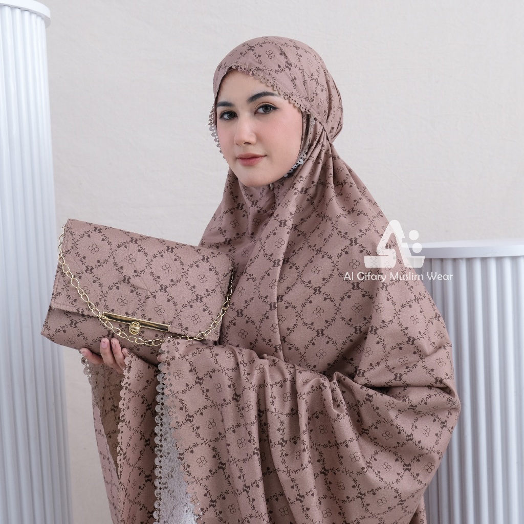 Mukena Dewasa 2in1 Motif Lasercut Print Katun