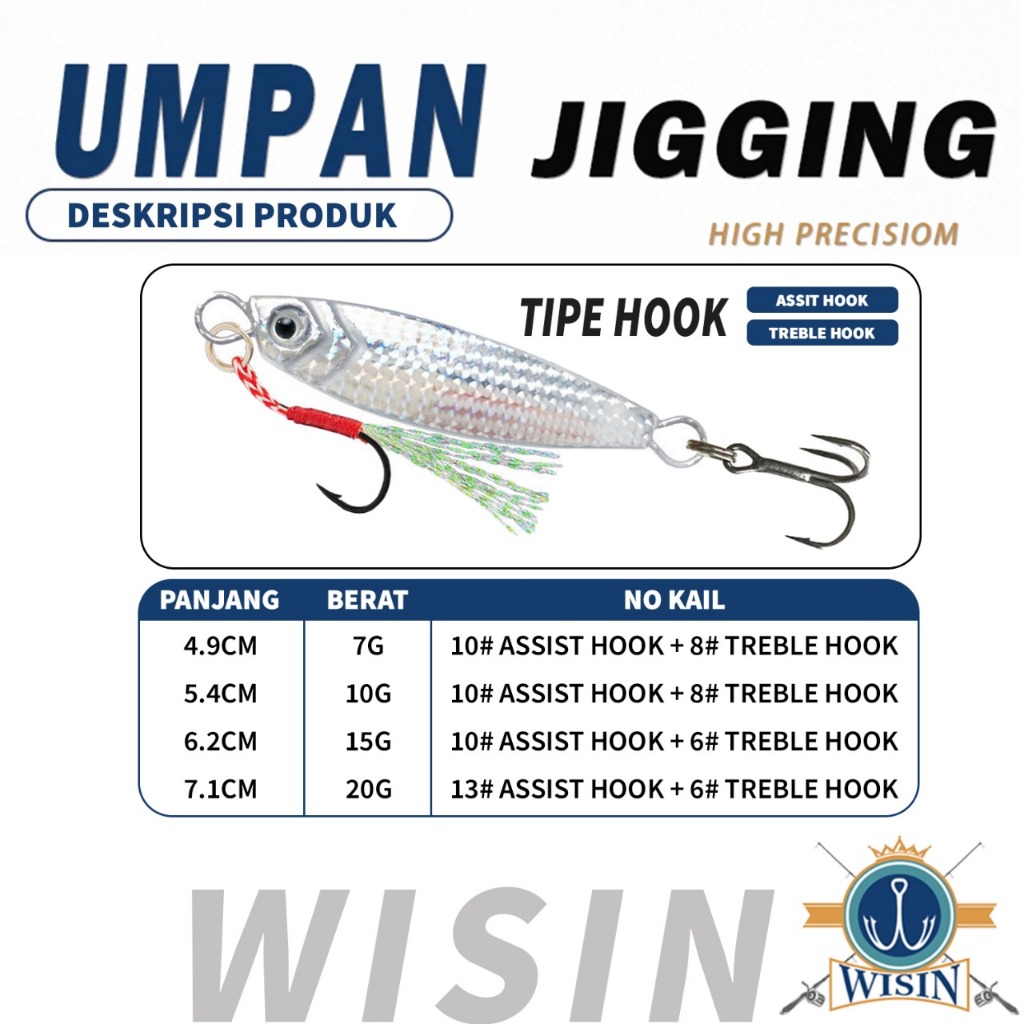 WISIN Baru Umpan Pancing Jigging Hook Memancing Spinner Umpan 7g/10g/15g/20g Laser Metal Jig Spoon Fishing Lure