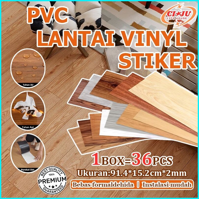1box 36 Pcs 91.4 Cm X 15.2 Cm Lantai Vinyl Vinyl Stiker Lantai Kayu Pvc Vinyl Lantai Kayu Premium Flooring Sticker Stike