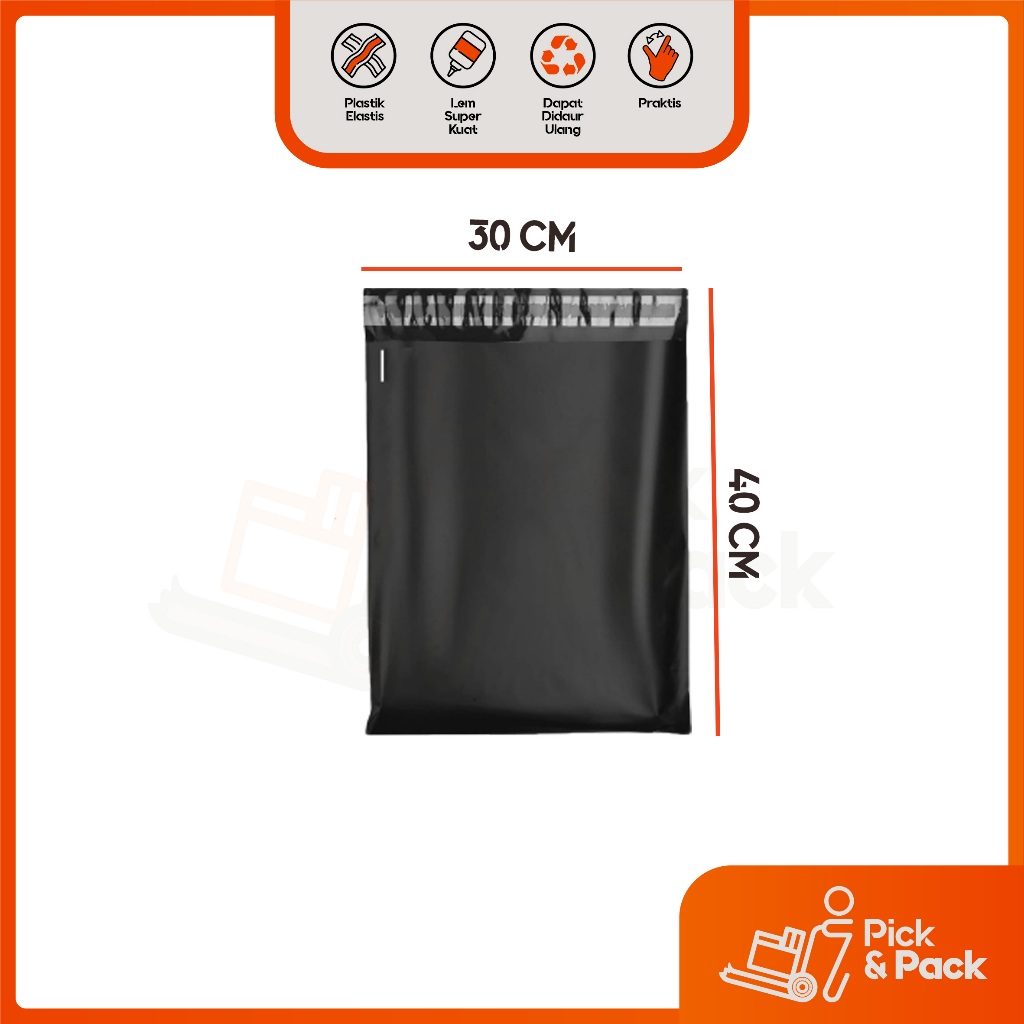 Plastik Polymailer Hitam LDPE 30x40 isi 100 pcs - Bungkus Plastik Packing Online Lem / Polymailer Hitam HD Ekonomis 30X5