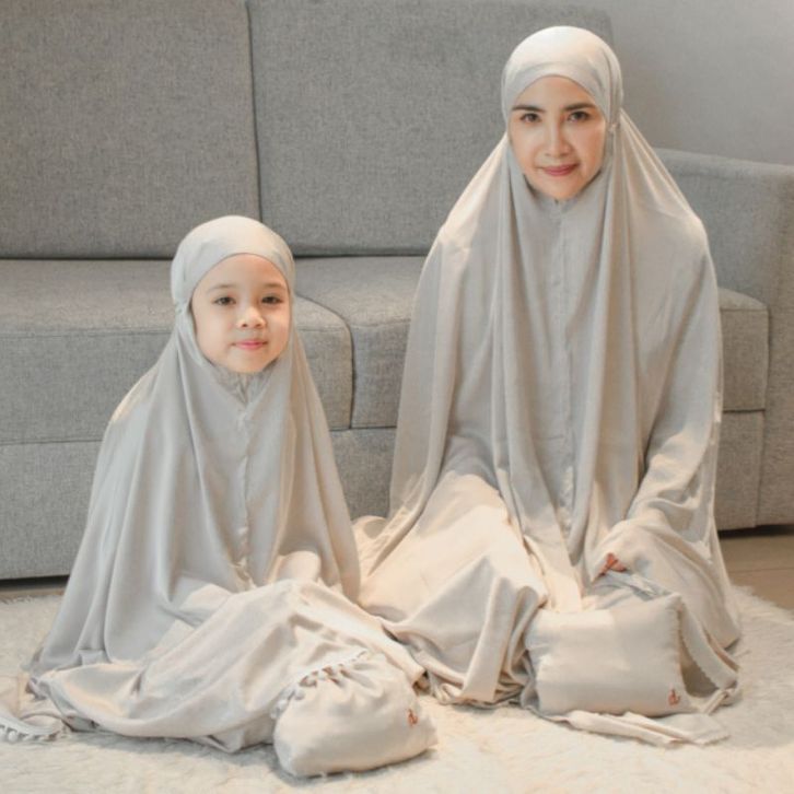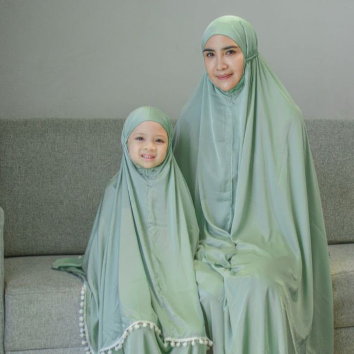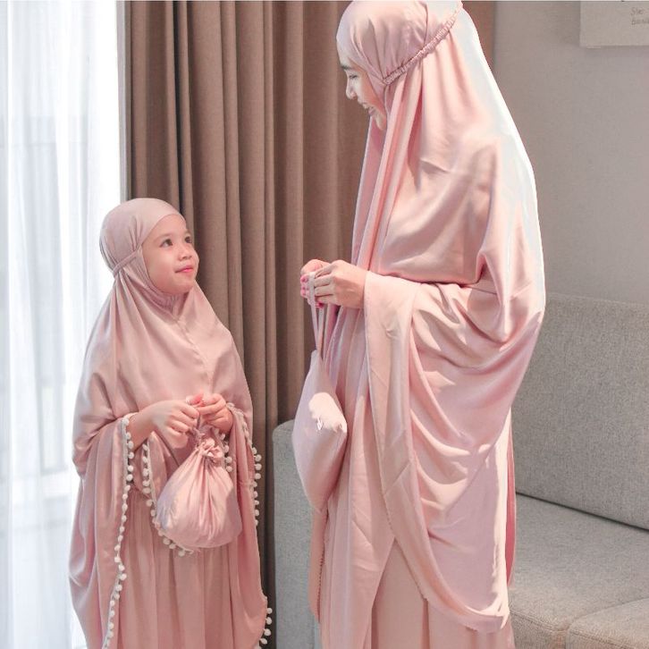 Premium Silk Couple Mom Kids Prayer Set Laser Cut / Mukena Premium Ibu Anak Silk