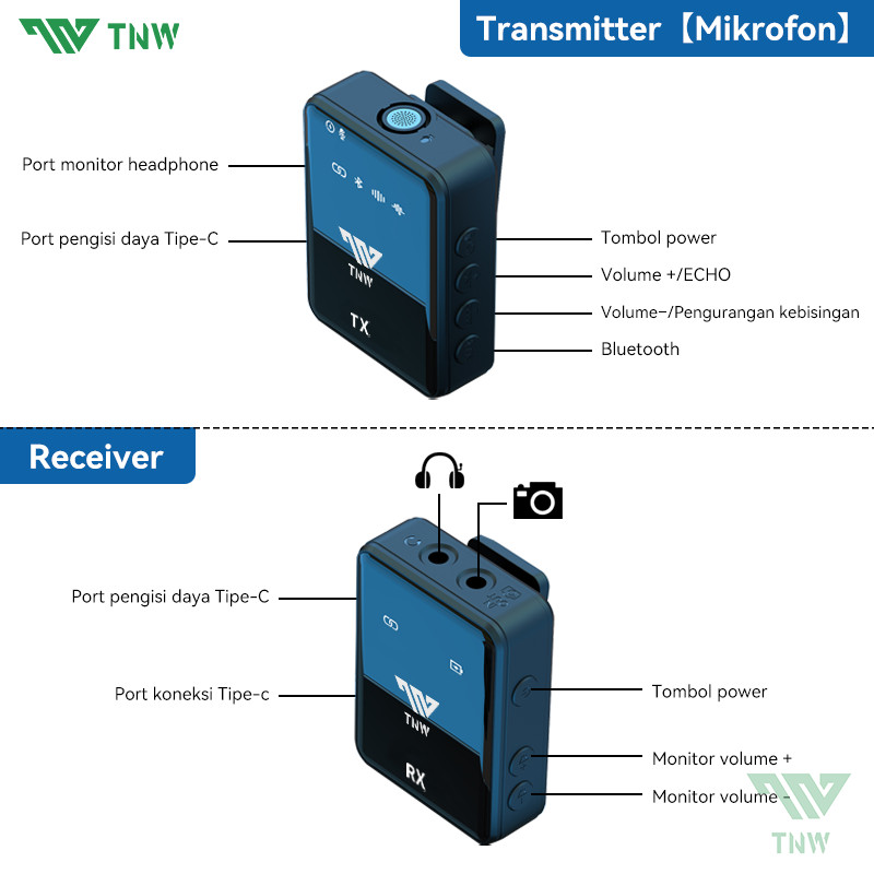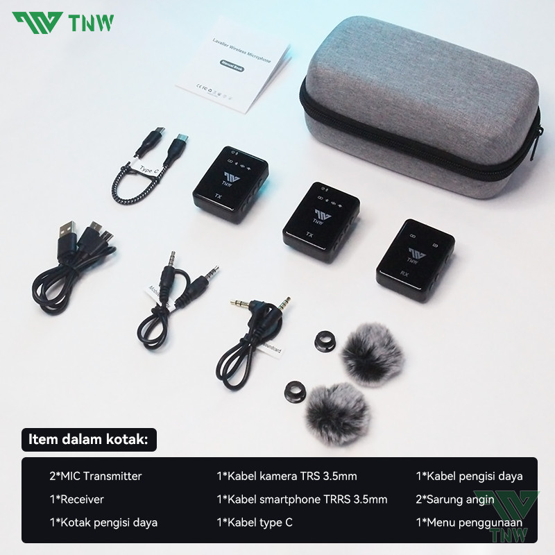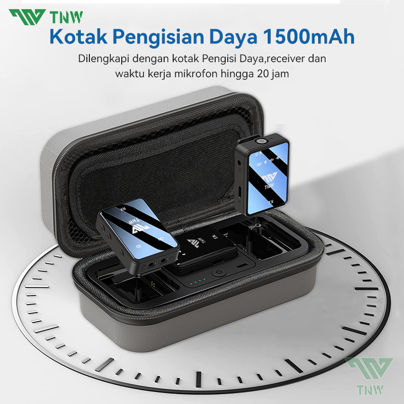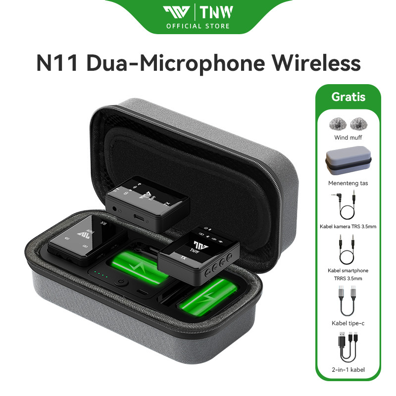 TNW N11 Wireless Microphone Dual Lavalier Mikrofon Hp Dan Charging Case Mikrofon untuk HP DSLR Kamera