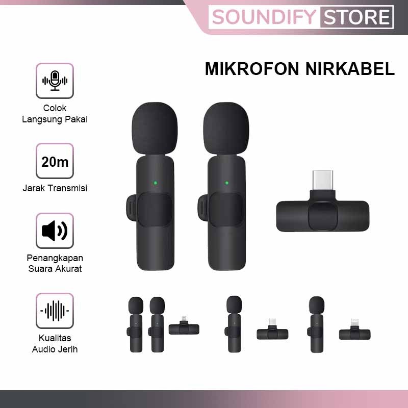 DSP Noise Reduction Mic Wireless - Microphone Clip On 20 Meter Range, Plug & Play untuk HP & Kamera
