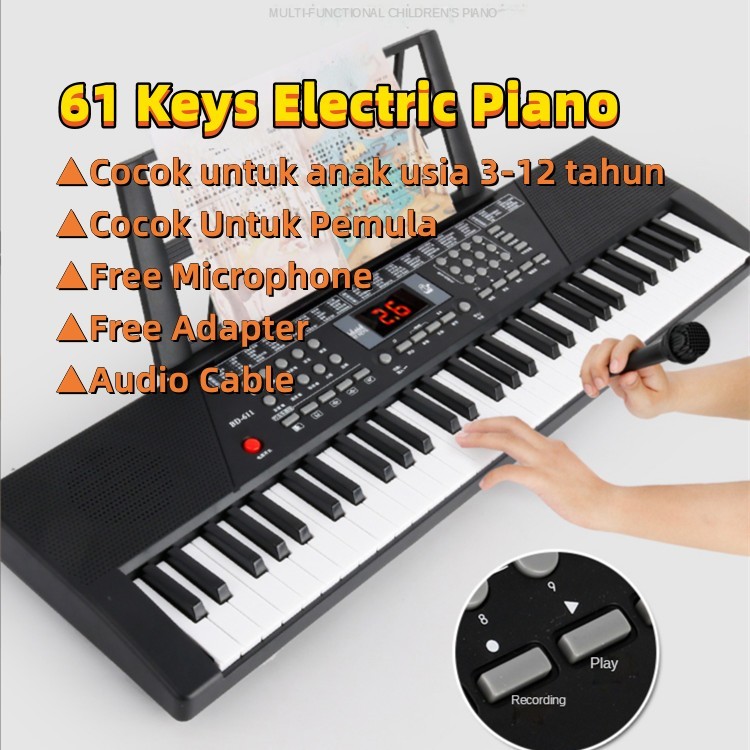 24H 61 Keys Electric Piano / Dengan Mikrofon Dan Adaptor Electronic Learning Keyboard / Organ Elektronik Untuk Pemula