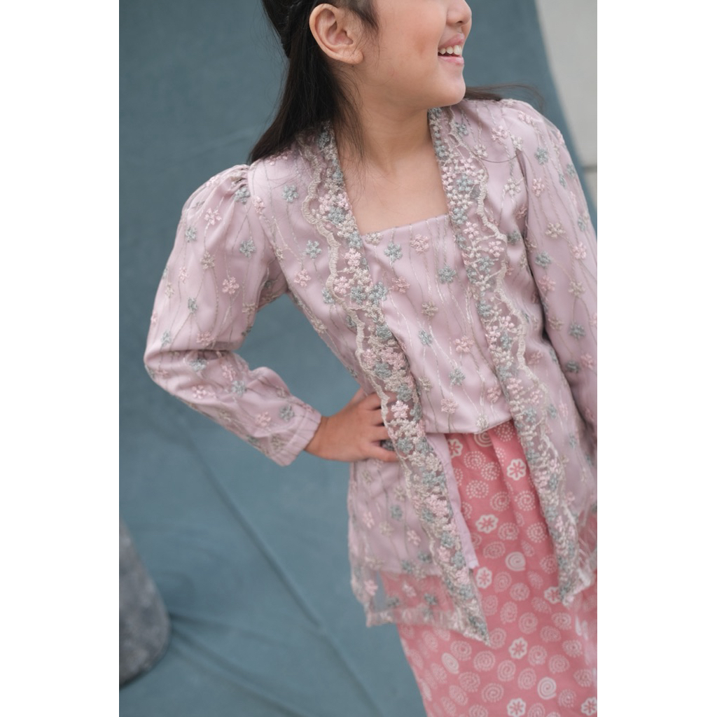 Kebaya kutubaru Anjani - Kebaya kutubaru anak perempuan motif bunga set atas bawah