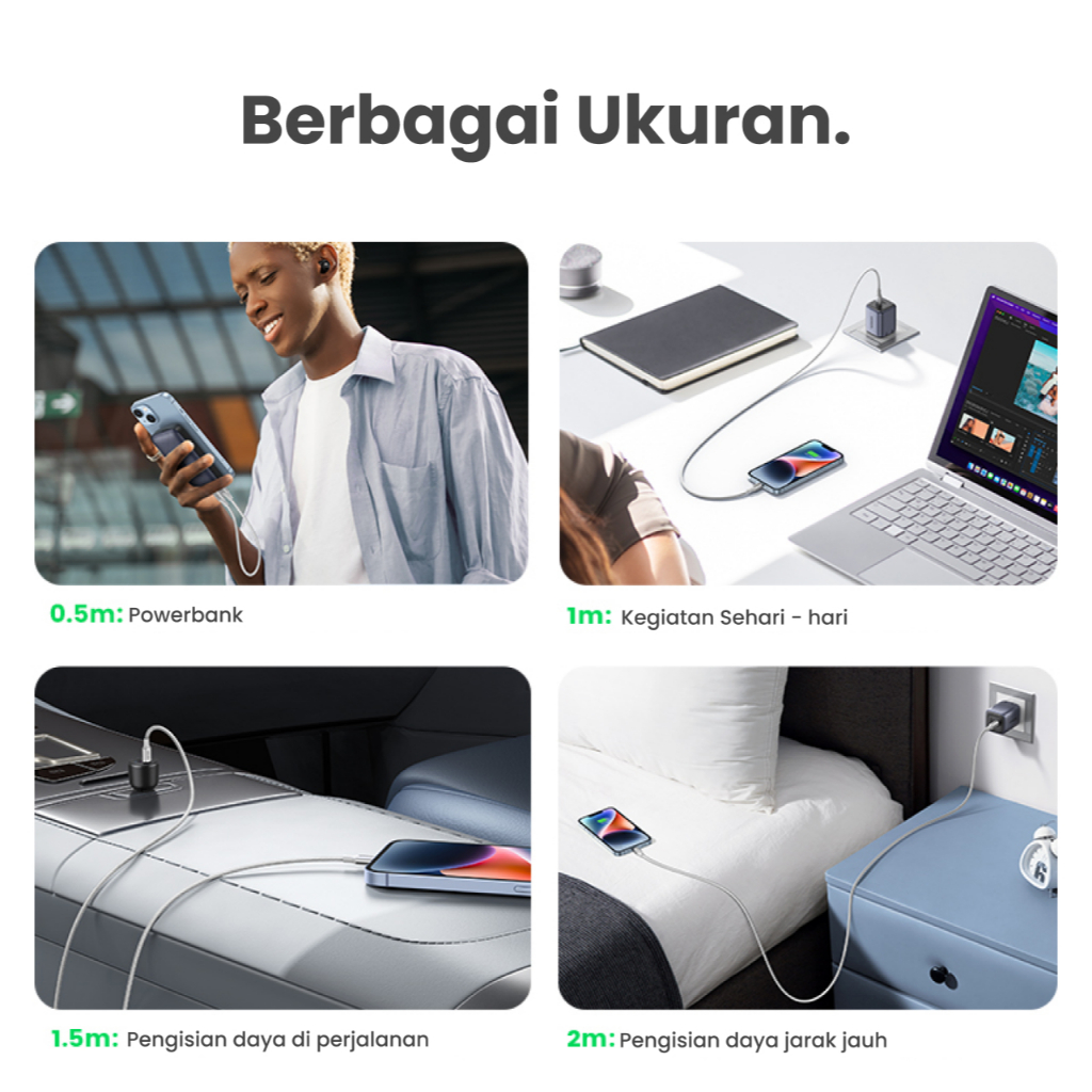 UGREEN Kabel Data Fast Charging iPhone 14 13 12 11 Pro Max Plus Charger USB Type C to Lightning MFi Cable by UniTAG