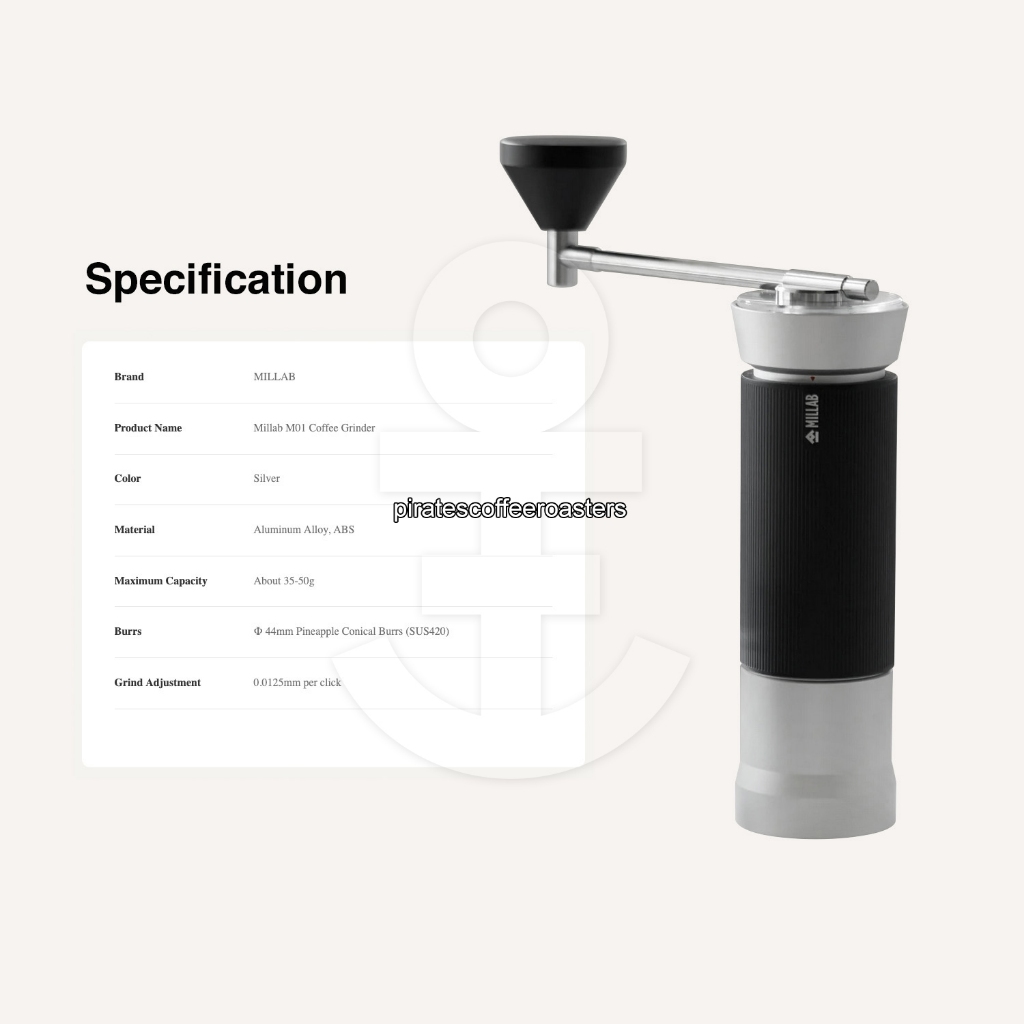 Timemore X Millab M01 Manual Hand Coffee Beans Grinder with Pinneaple Burrs 44mm - Alat Penggiling Biji Kopi