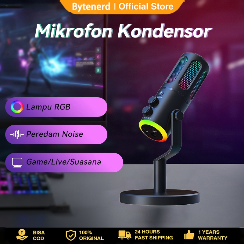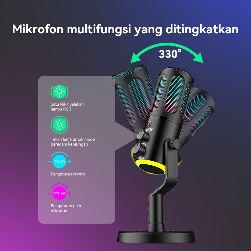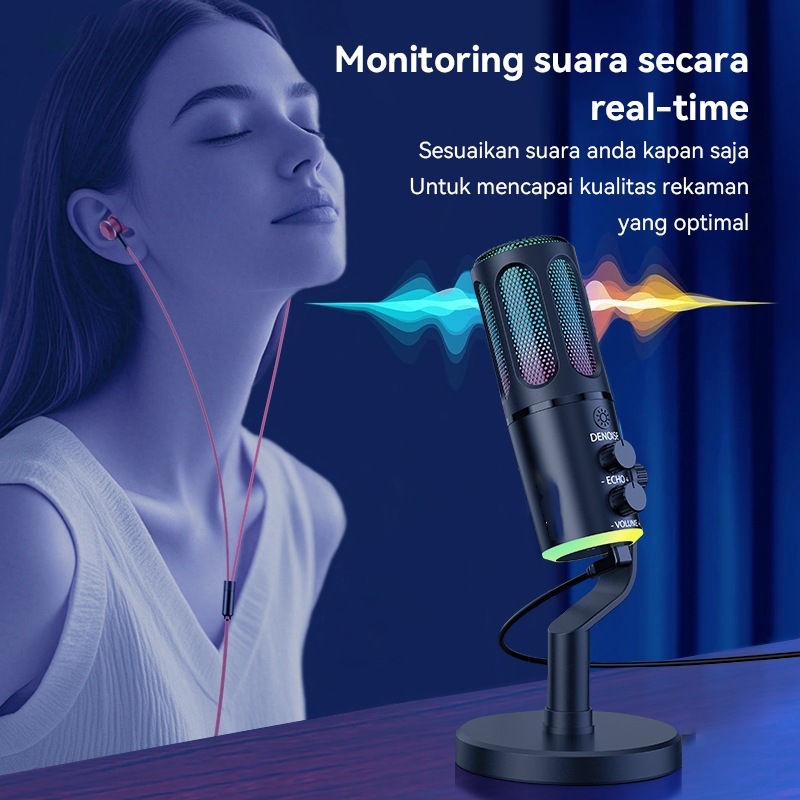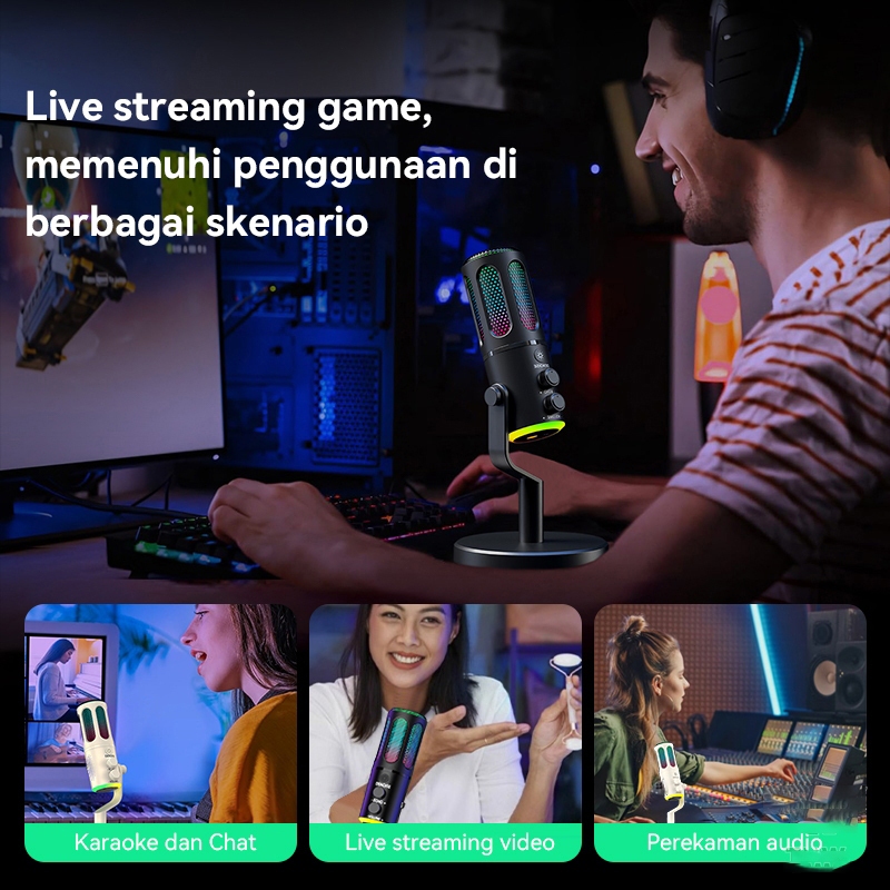 Microphone Condenser USB Type-C Mikrofon with RGB Dynamic Mic for PC Laptop Live Streaming Gaming Recording