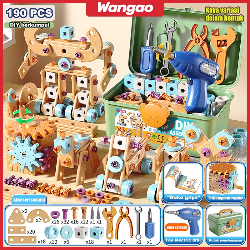 Wangao Mainan Edukasi Bor Listrik Tool Box Alat Perbaikan Simulasi Pembongkaran Dan Mainan Diy