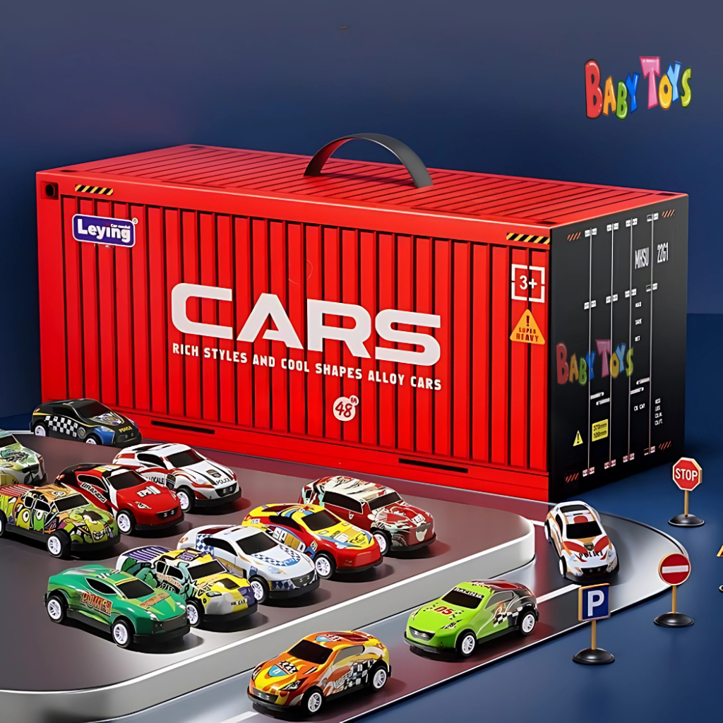 Babytoys Mainan Mobil Mobilan Anak Container Set Isi 48 Pcs Kado Anak Laki Laki Ulang Tahun Edukatif