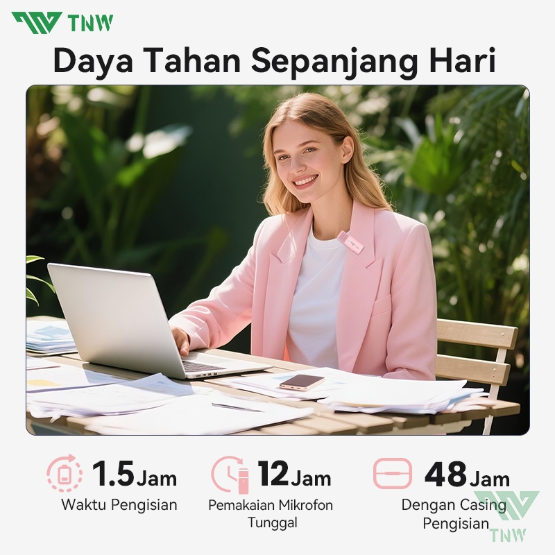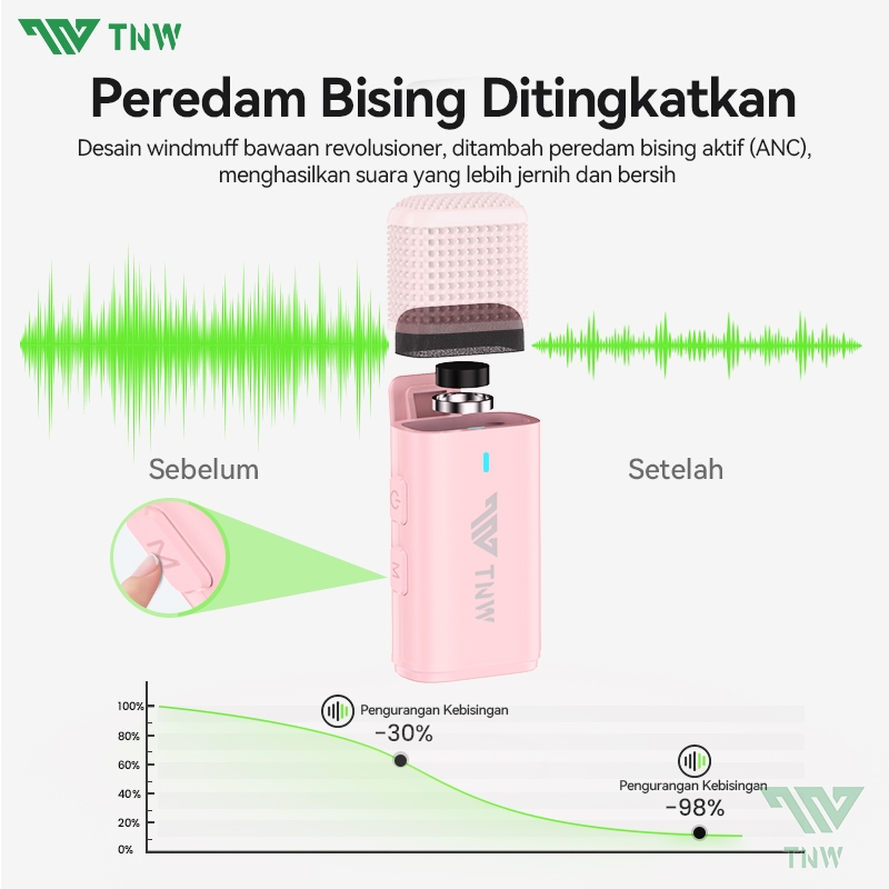 TNW A17 Mic Wireless Microphone Lavalier Clip On Plug & Play Wireless Lavalier Dual Mikrofon With Charging Case Tampilan