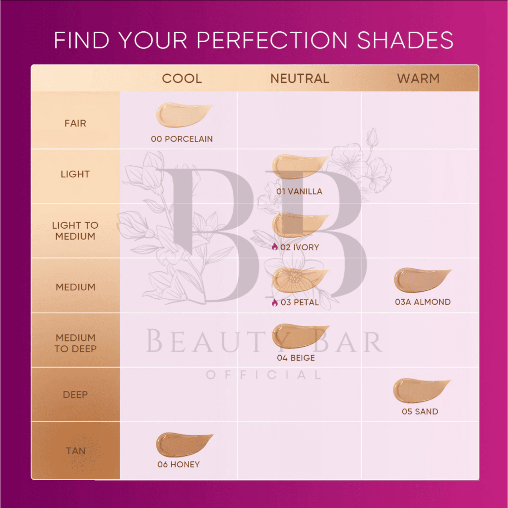 02 Ivory, 00 Porecelain, 01 Vanilla, 03 Petal, 04 Beige