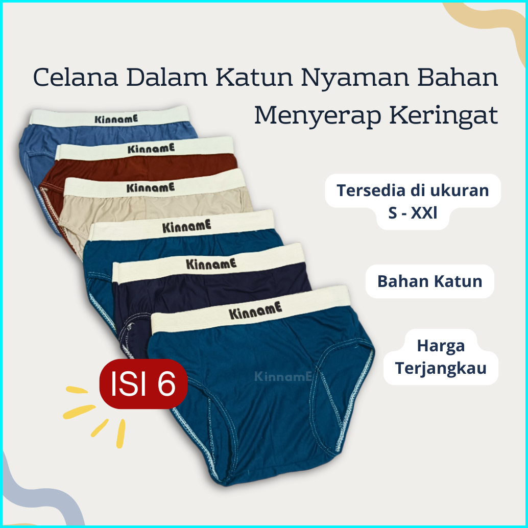 Kinname 6 Pcs Cd Celana Dalam Pria Dewasa Segitiga Boxer Bahan Katun