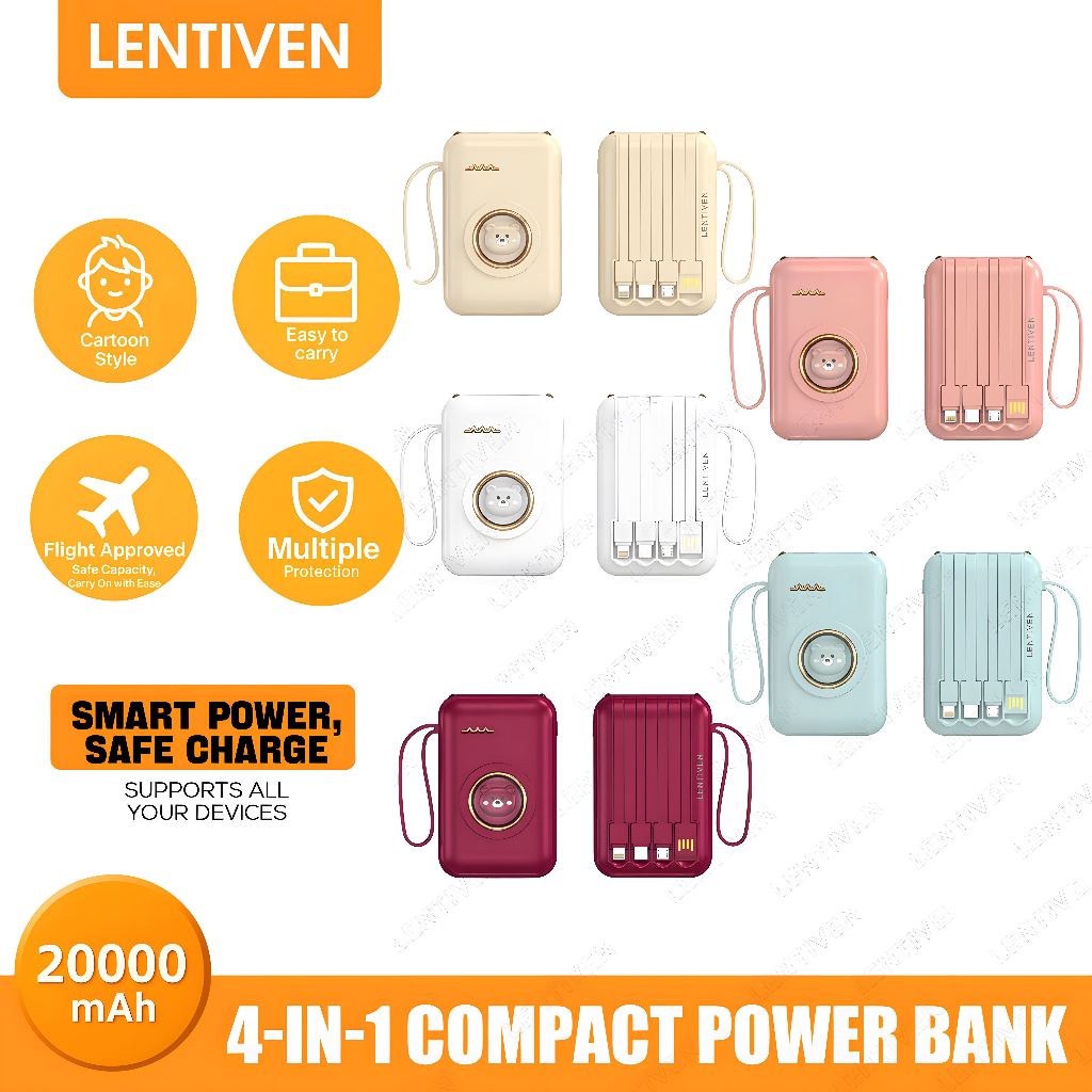 YIBAO LENTIVEN WER 20000MAH MINI FAST CHARGING 4 KABEL LED DISPLAY UNTUK IPHONE/ANDROID LT298 1 TAHUN