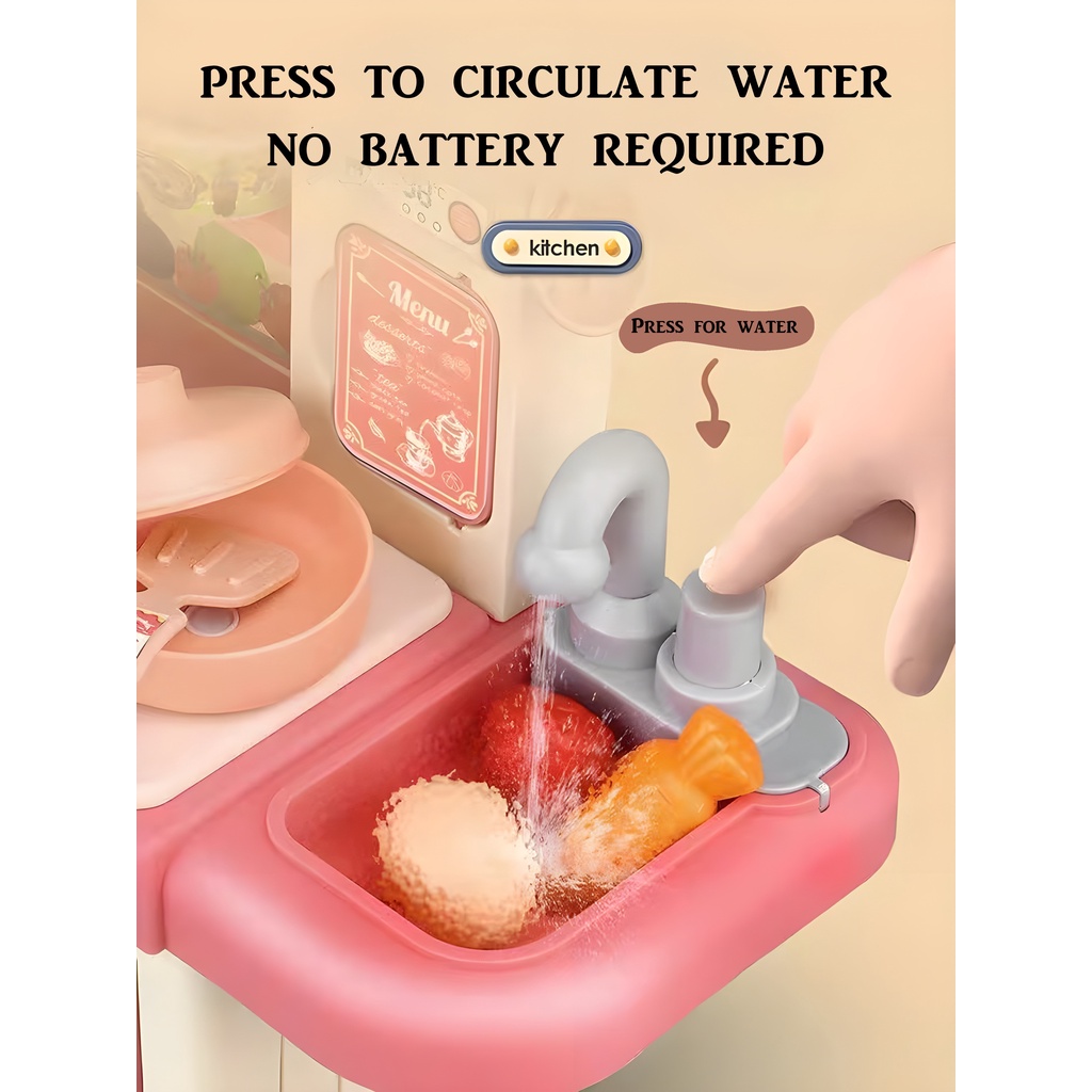 Mainan Anak Dream Kitchen Home Kitchen Playset Pretend Play Masak Masakan With Smoke + Light & Sink