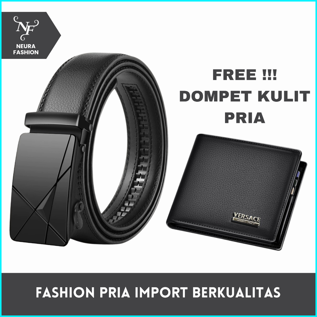 Free Dompet Kulit Ikat Pinggang Pria Panjang 120cm Model Kepala Metal Anti Gores Ikat Pinggang Pria Kerja Trendy