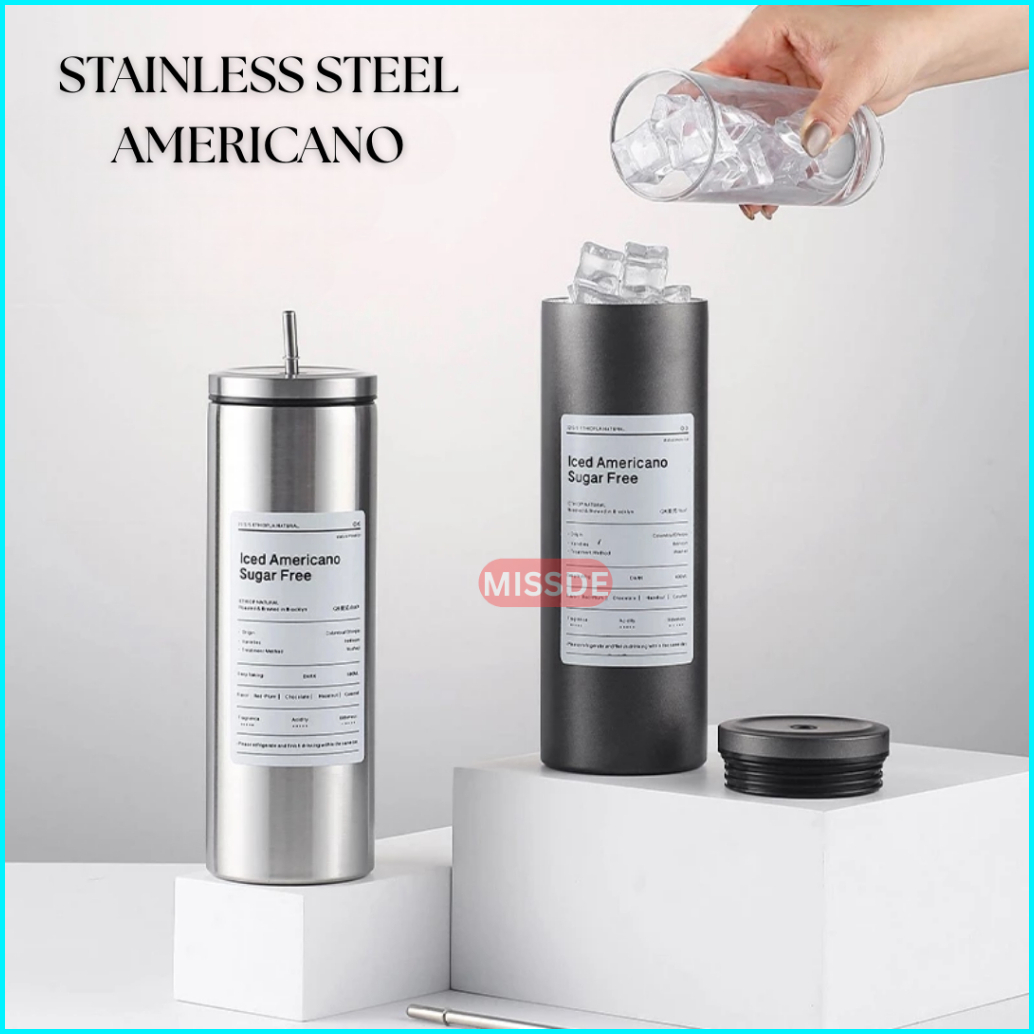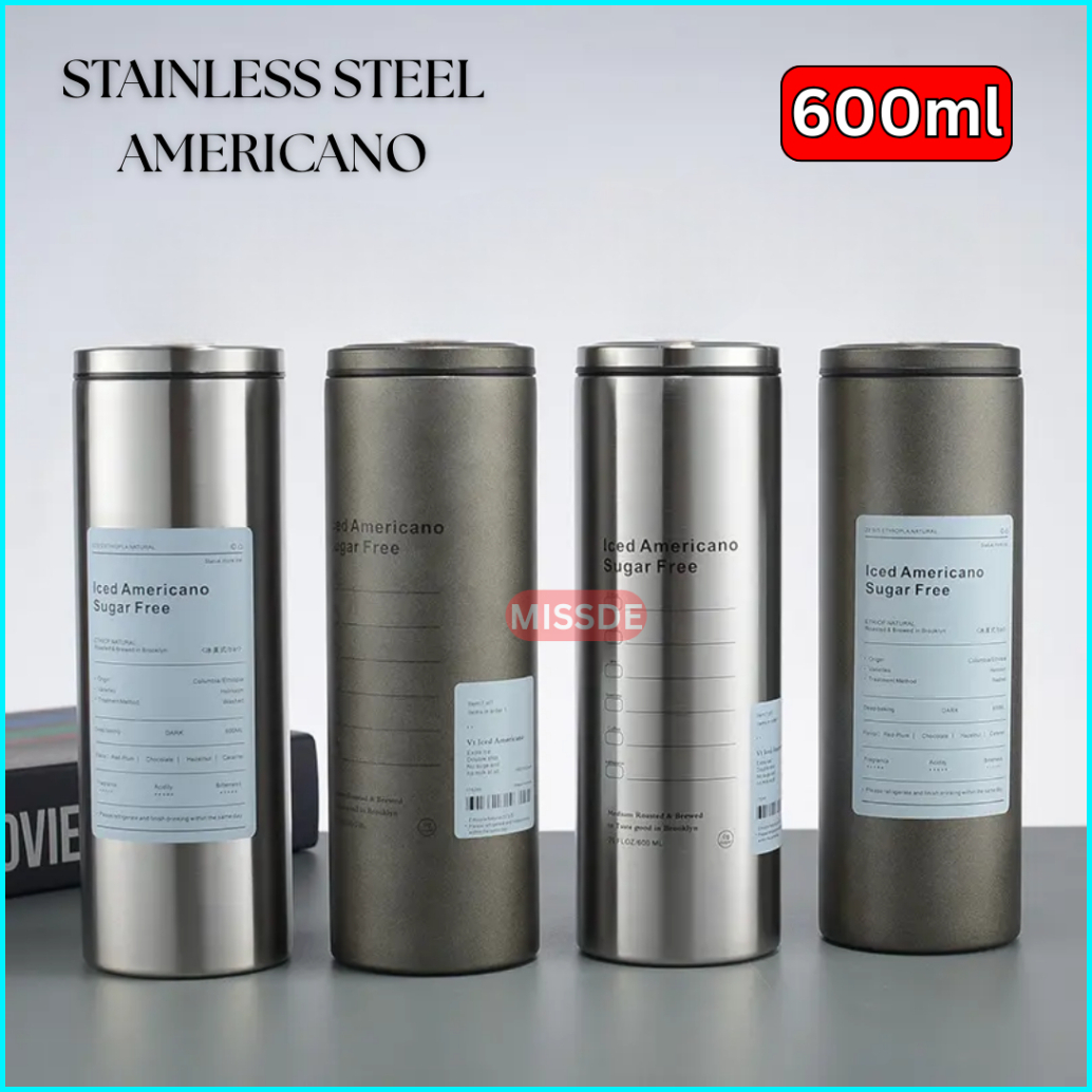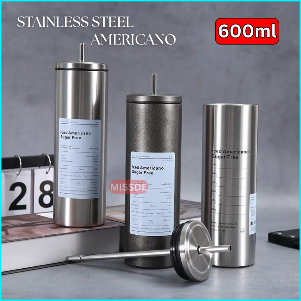 Tumbler Slim Americano 600ml Aesthetic Mug Coffee Cup Stainless Steel Sedotan Tumblr Americano Slim 600ml