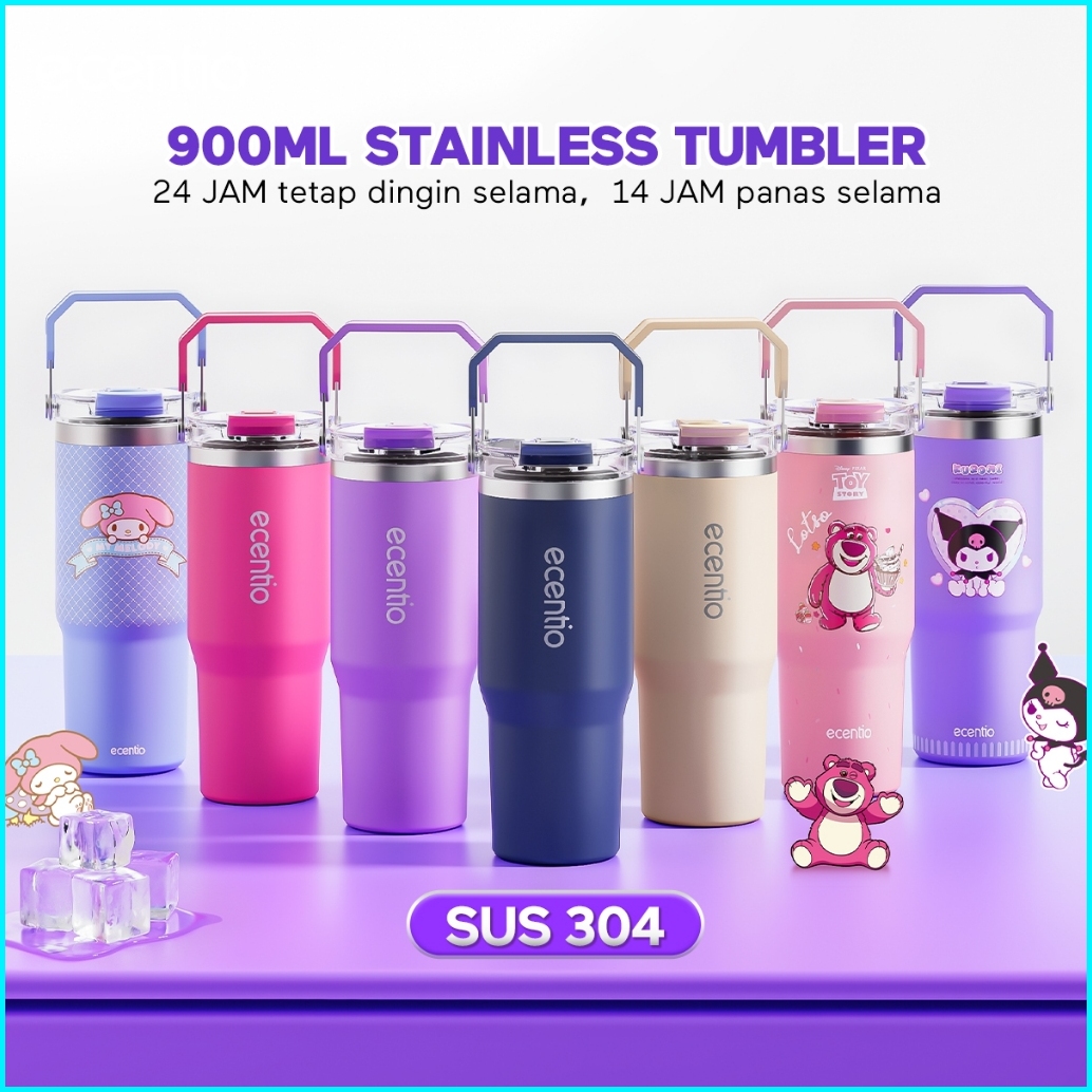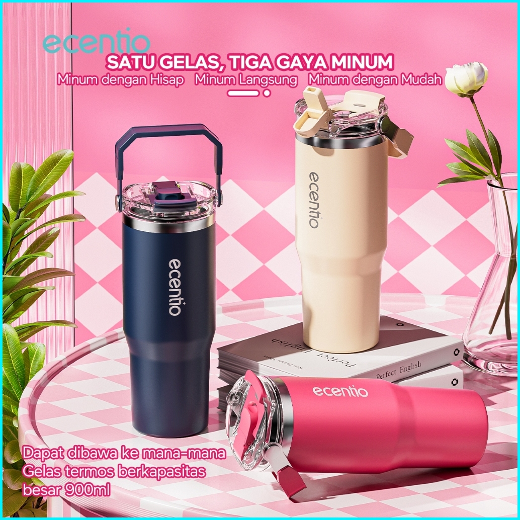 Ecentio Tumbler Minum Stainless Tumbler Tahan Panas Dingin 24 Jam 900ml Premium Botol Minum Aesthetic Besar Tahan Digin