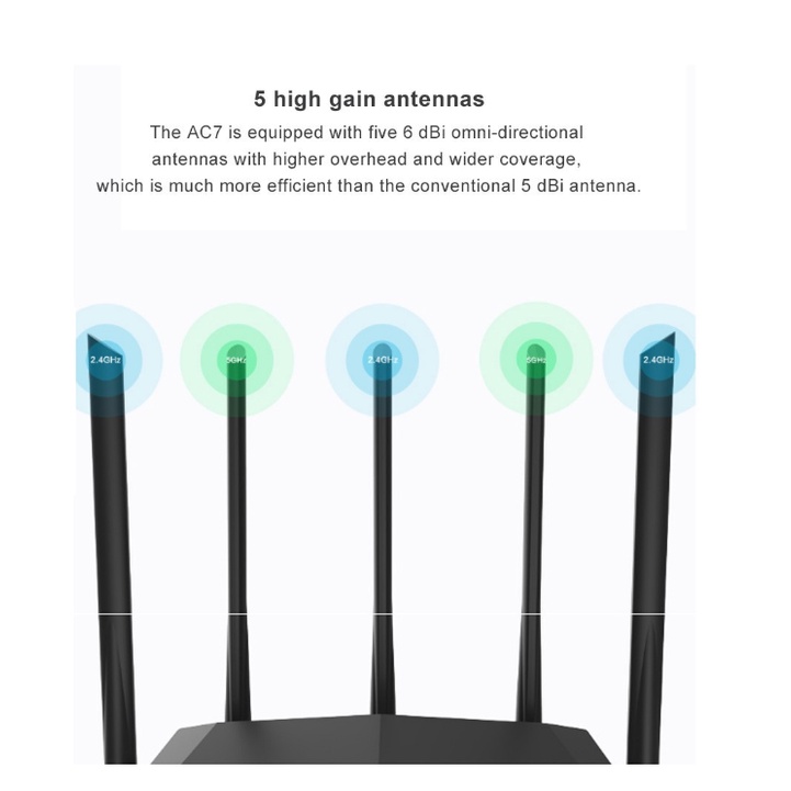 Tenda AC7 Router Wifi Wireless WiFi 1200Mbps 2.4 5.0GHz 5 Antena