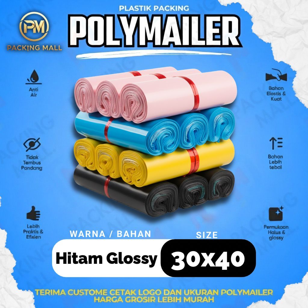 Plastik Polymailer 30x40 / Polymailer glossy / Plastik Packing Baju Isi 100 Pcs Bahan Glossy / Plastik Hitam / Plastik W