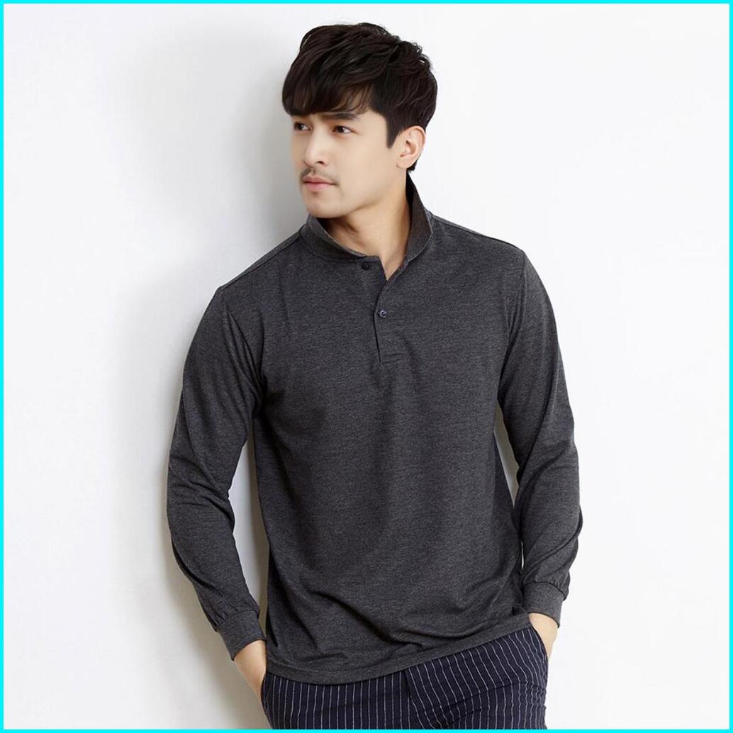 E39 Fashion - Kaos Kerah Polos Lengan Panjang Kaos Polo Olahraga Lengan Manset Reguler Fit