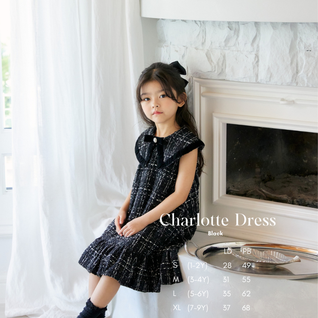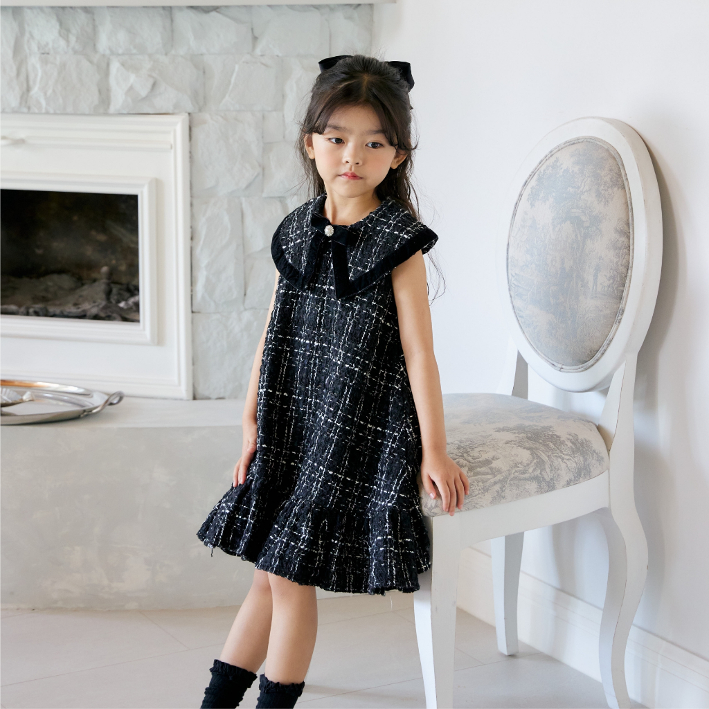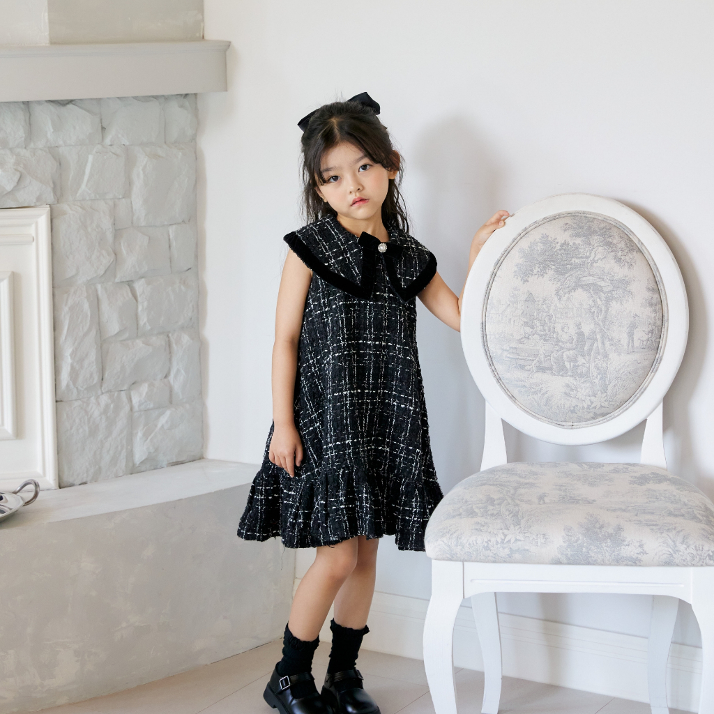 MOONJOY CHARLOTTE TWEED DRESS - dress baju anak perempuan ulang tahun pesta casual pita
