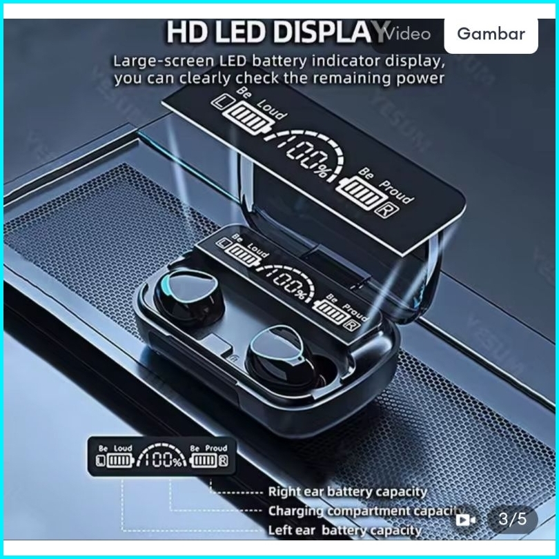Headset Bluetooth M10 Tws Earphone V5.1 3500mah Wireless Headphones