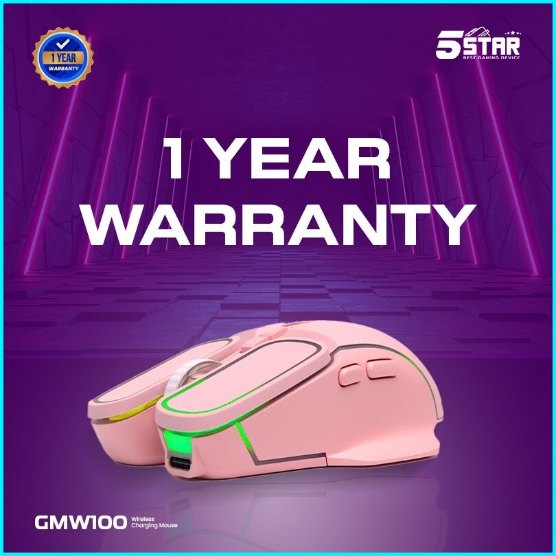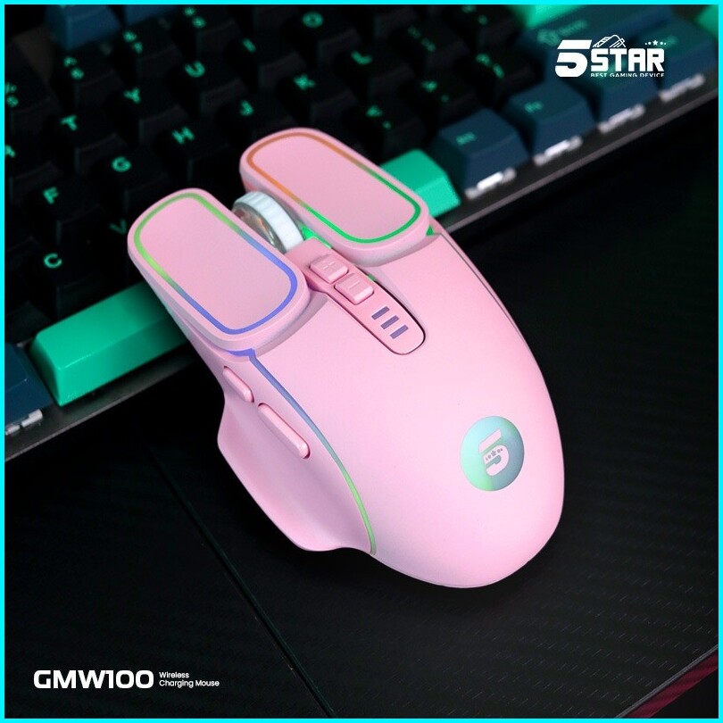 5star Mouse Pink Wireless Gaming Rechargeable Baterai Type-c Fast Charging 1600dpi Rgb Light Gmw100