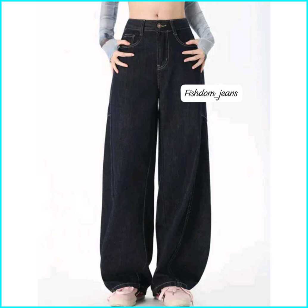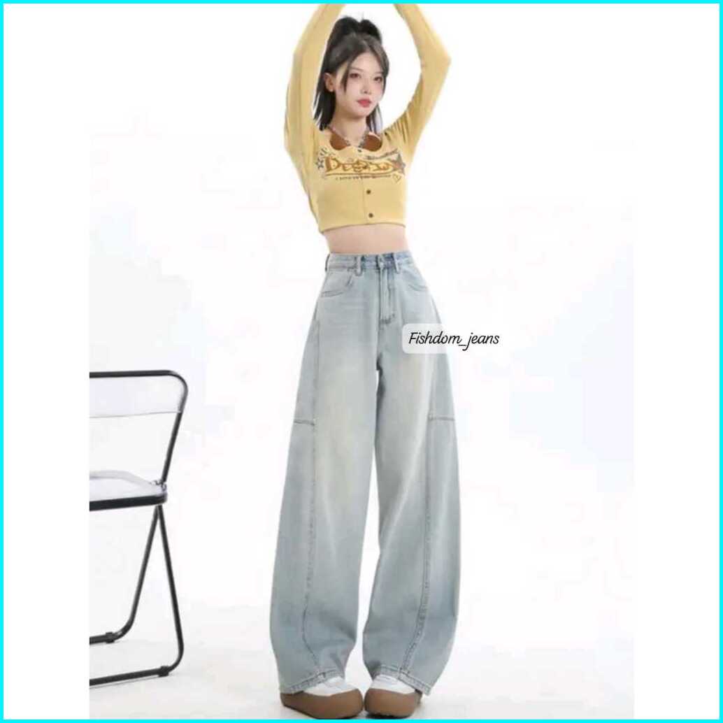 Baggy Barrel Pants Barel Jeans Raw Denim Pria Dan Wanita Outfit Gombrong Wide Leg Jins Celana Panjang Korean Regu