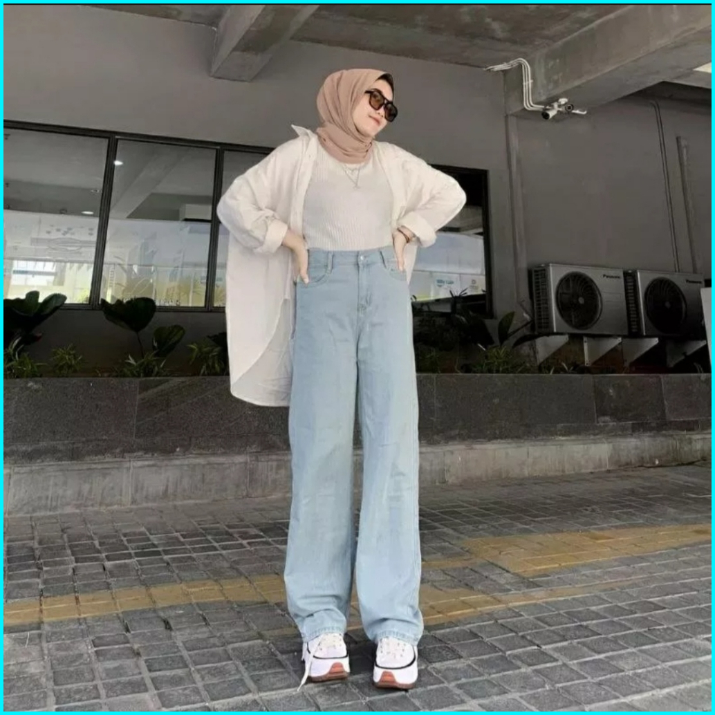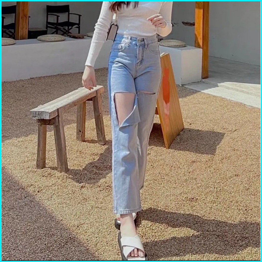 Celana Jeans Wanita Highwaist Loose Sobek Light 27-34