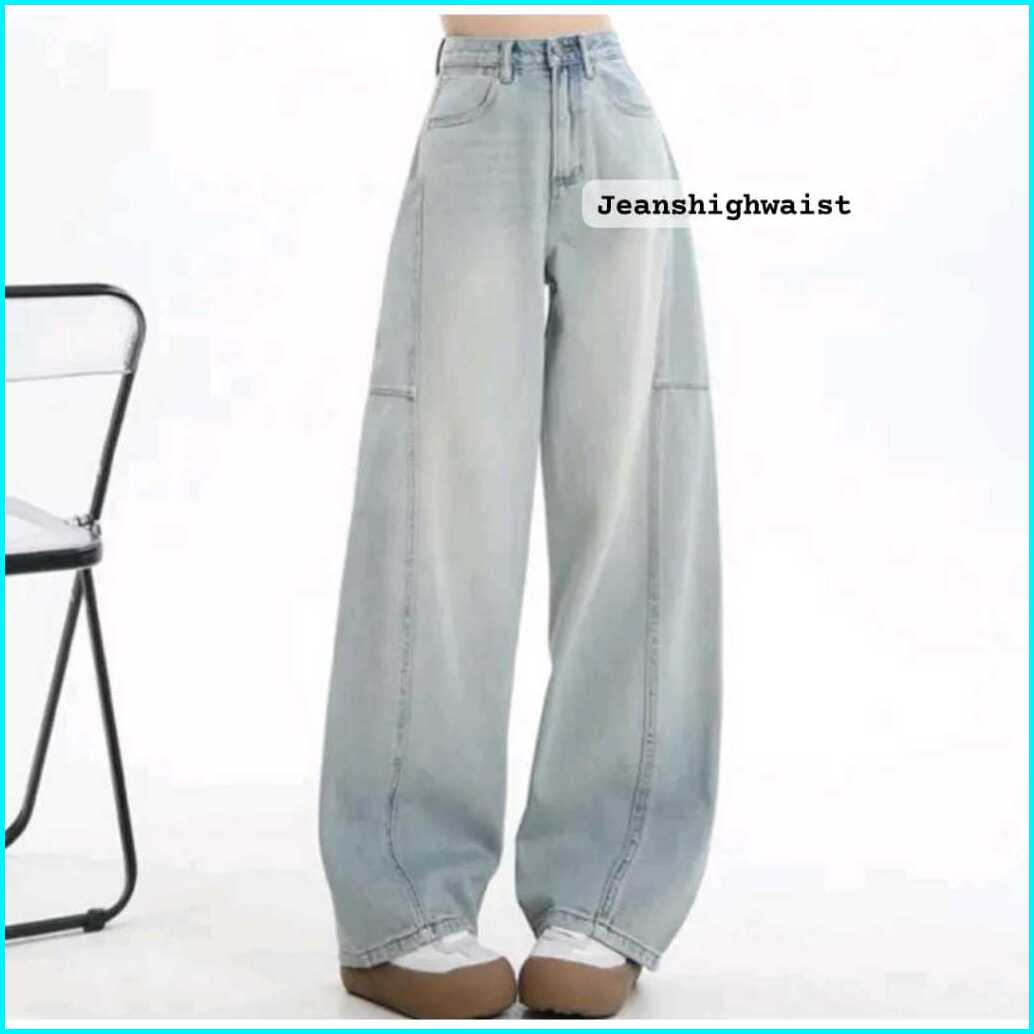 Baggy Barrel Pants Jeans Raw Denim Pria Dan Wanita Barrel Outfit Gombrong Wide Leg Jins Oversize Celana Panjang K