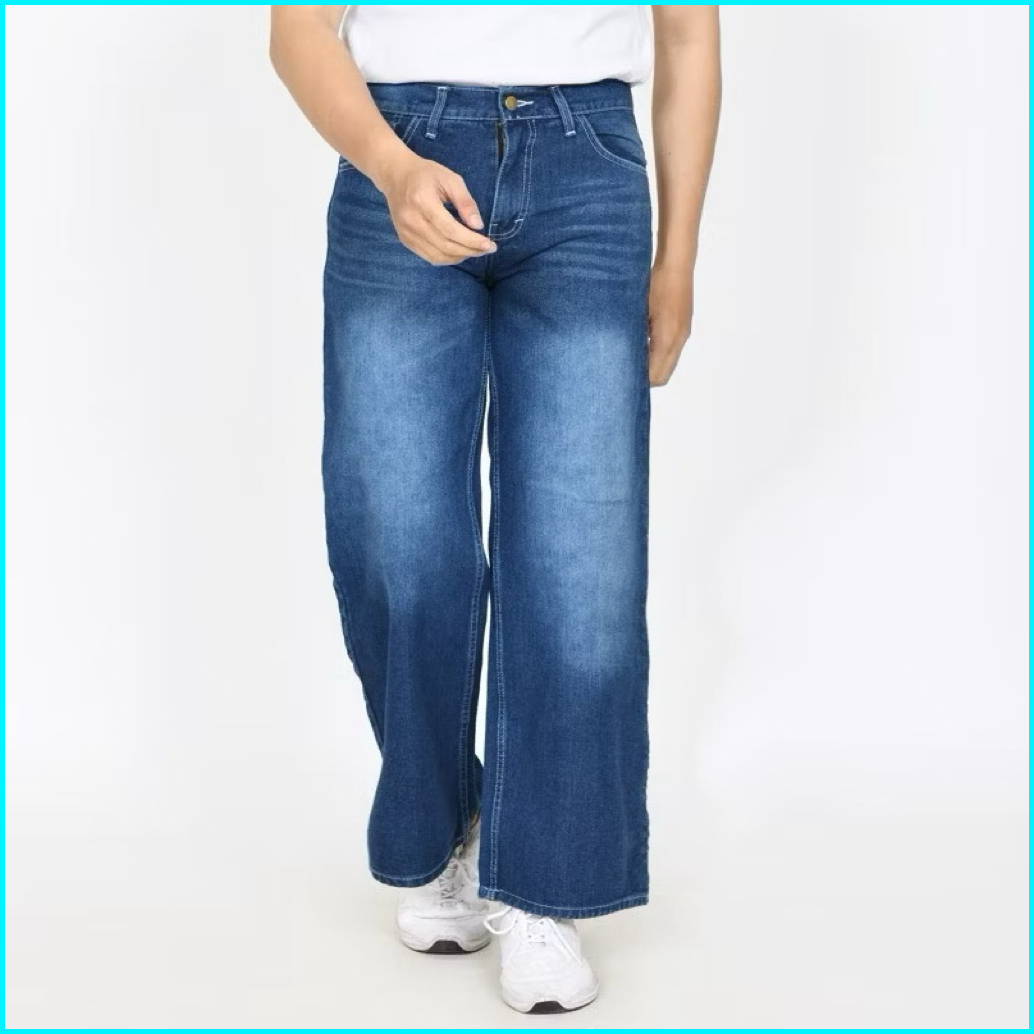 Highwaist Celana Jeans Baggy Pants Korean Style Oversize Loose Blue Jeans Straight Kulot Boyfriend Jeans Longgar