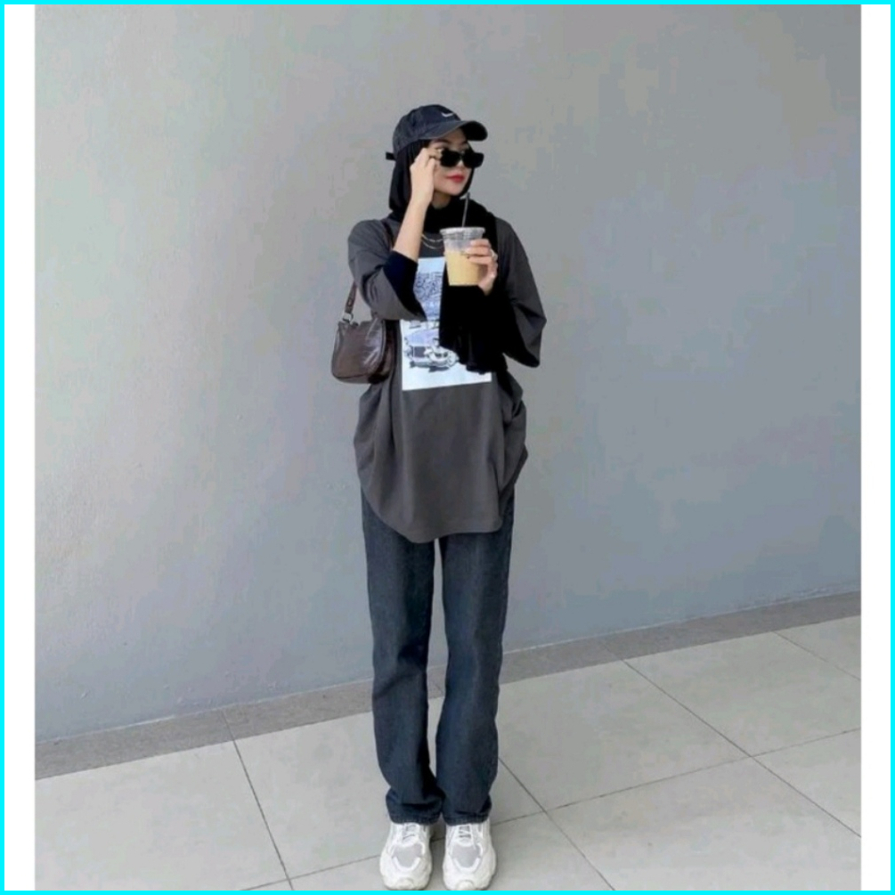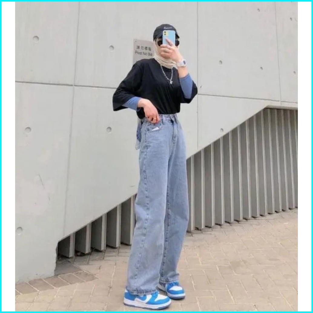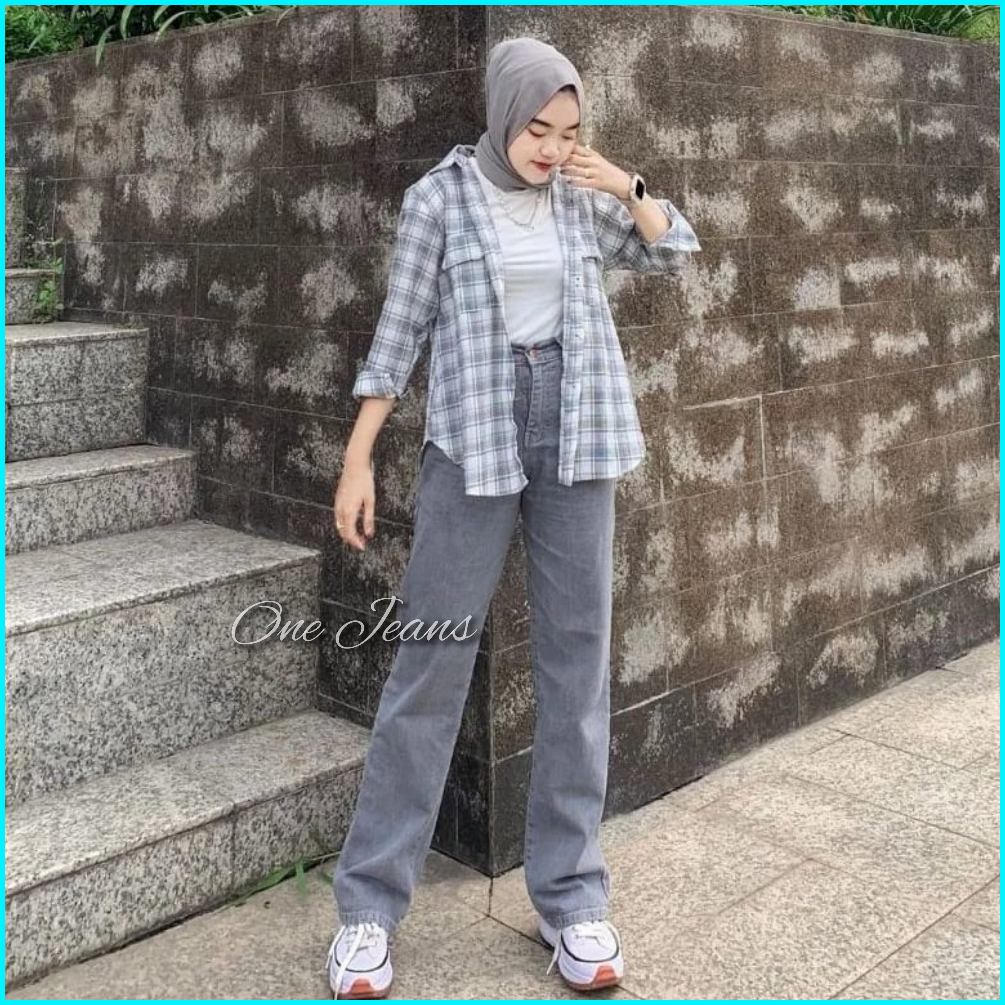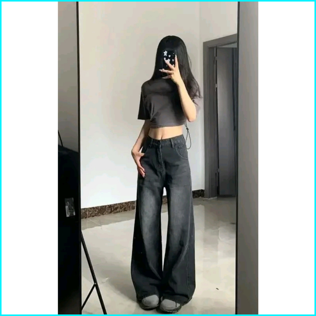 Terbaru Highwaist Loose Grey Abu Celana Korea Style Kulot Jeans Wanita Panjang 100