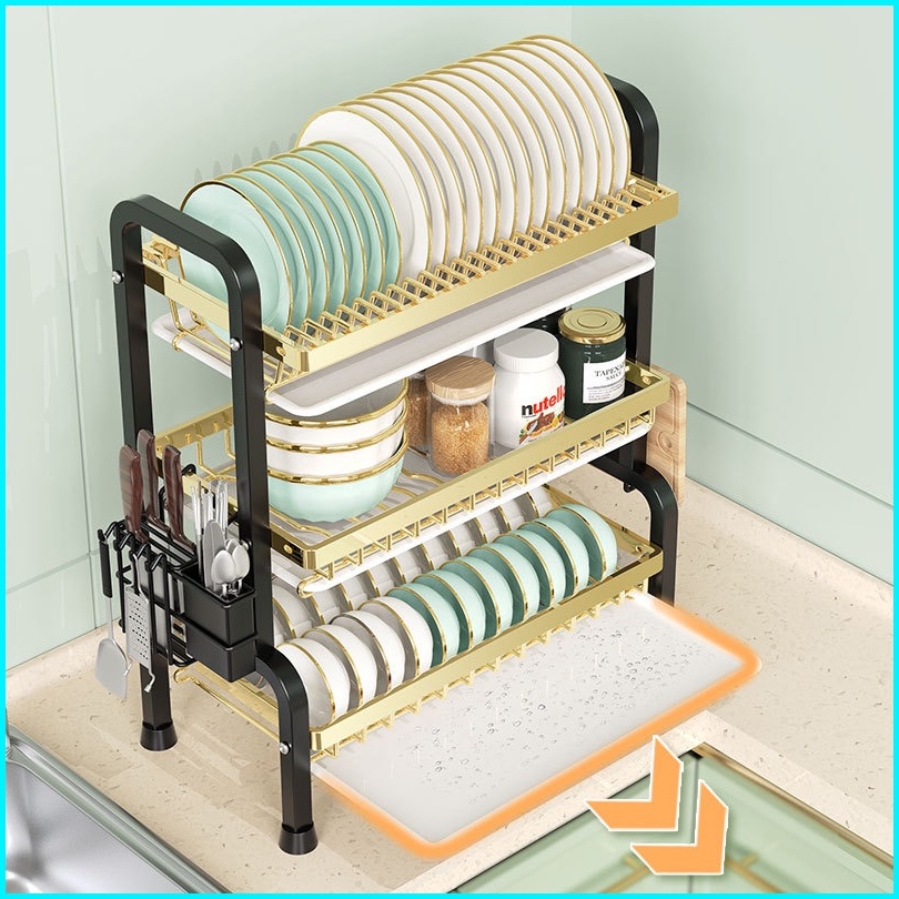 Zenrak Piring Stainless 2 3 Susun Rak Cuci Piring Pengering Piring Stenlis Rak Piring Rak Dapur Dish Rack Dish Drainer