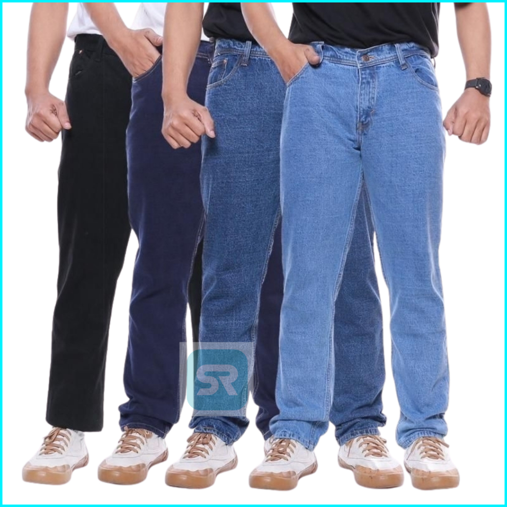 Celana Jeans Pria Denim Warna Hitam Black Premium Tebal Model Standar Reguler
