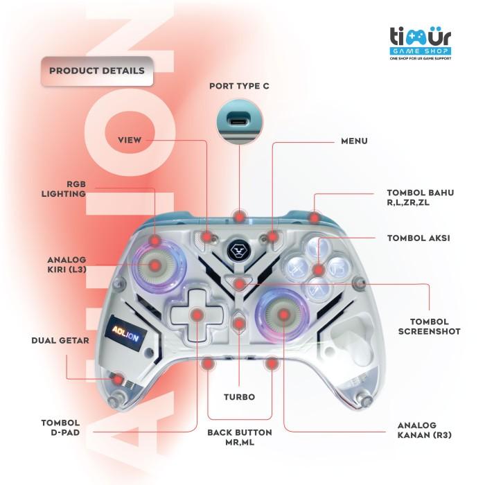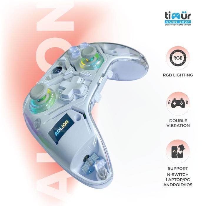 Gamepad Aolion Wireless Gaming Pro Controller RGB Stick Stik PC Laptop Android IOS for N-Switch White