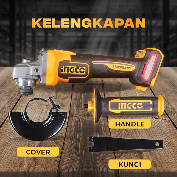 P20S Brushless Angle Grinder (4") INGCO CAGLI21104-GK - Mesin Gerinda Tangan Portable Baterai