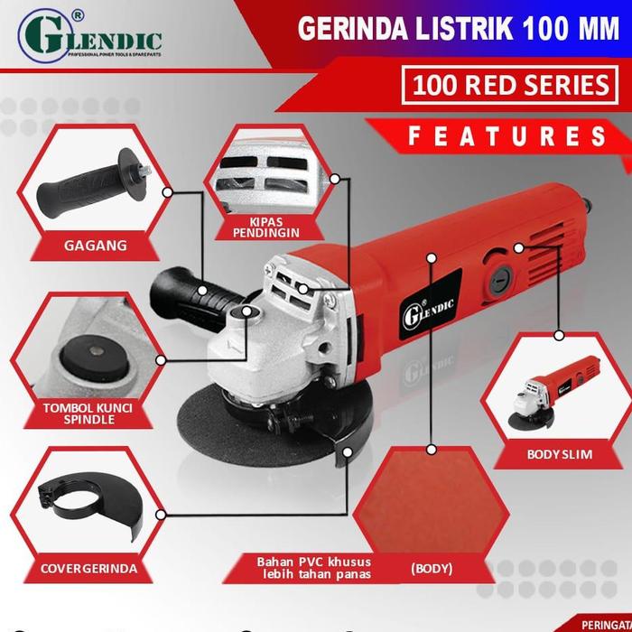 Glendic Mesin Gerinda Tangan Gurinda Disc Grinder 4 Inch Glendic 100 Red Series