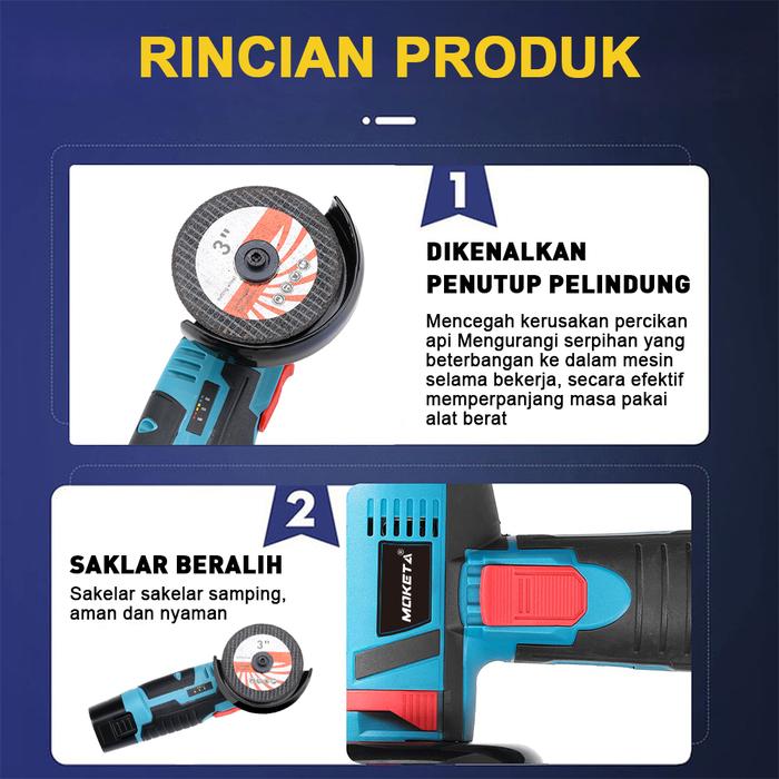 Mesin pemotong penggiling sudut mini baterai litium penggiling tangan elektrik tanpa sikat isi ulang