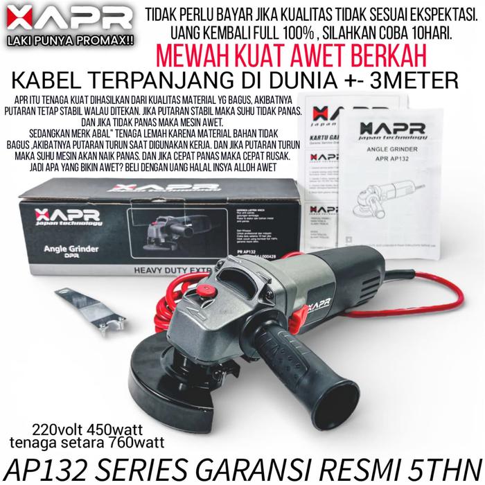 APR GERINDA TYPE AP132 PRO GARANSI RESMI 5THN KUALITAS DIATAS M4KITA ANGLE GRINDER MESIN GERINDA
