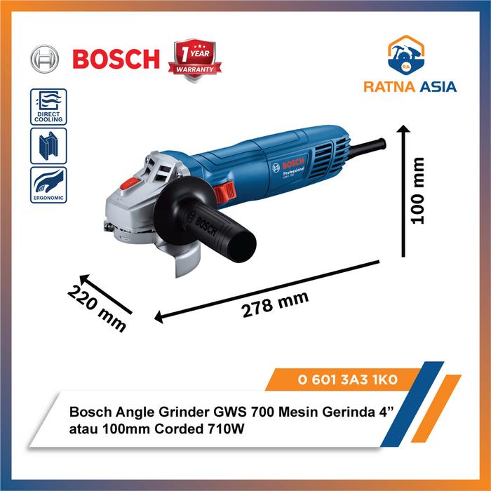 Bosch GWS 700 Angle Grinder 4" Mesin Gerinda 100 mm Corded 700W Professional