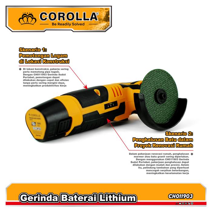 Corolla Portable angel Grinder Cordless 3 inci Mesin Gerinda Tangan Elektrik Gerinda Baterai