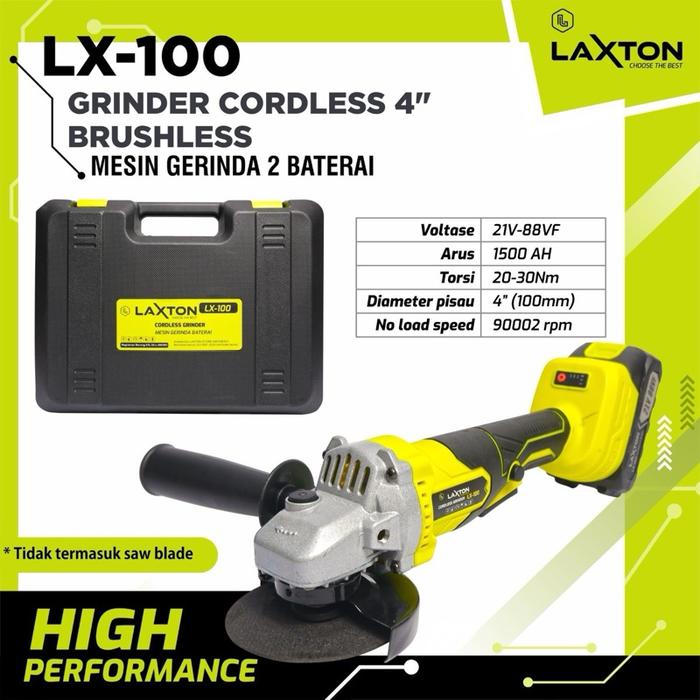 LAXTON LX100 gerinda angle grinder gurinda tangan cordless baterai 4" variable speed 2 baterai