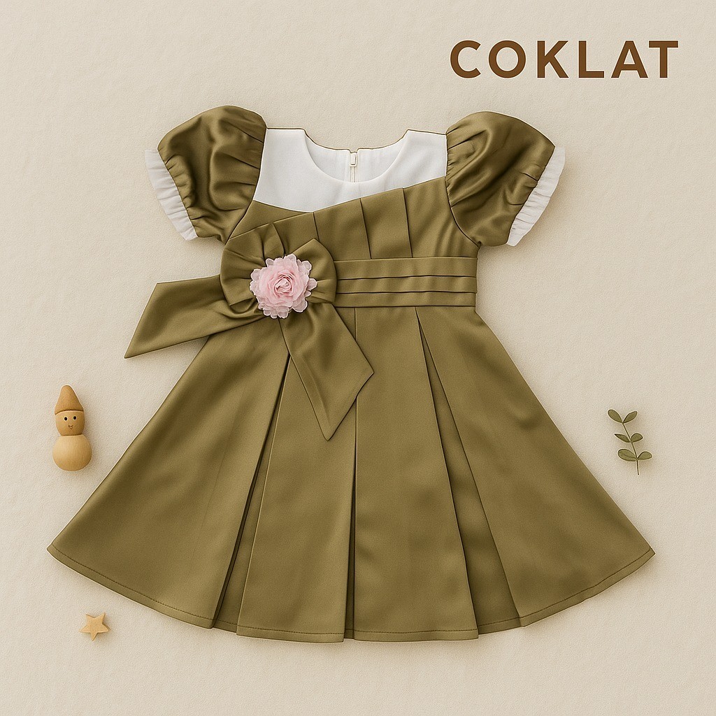 YUFFIE - Baju Dress Anak Perempuan Pesta Satin Mewah 1-12 Tahun Y909