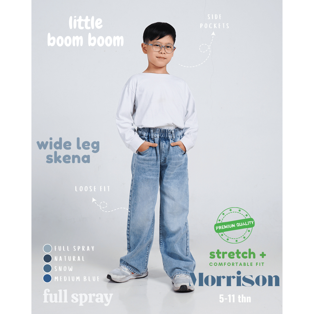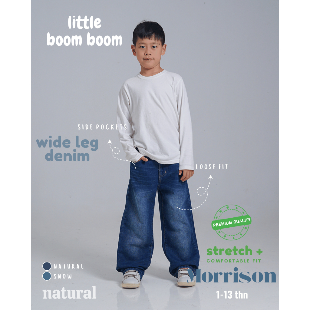 Little Boom Boom - Celana Panjang Skena Jeans Anak Laki Laki Wide Loose Fit 5-11 Tahun Premium Wash