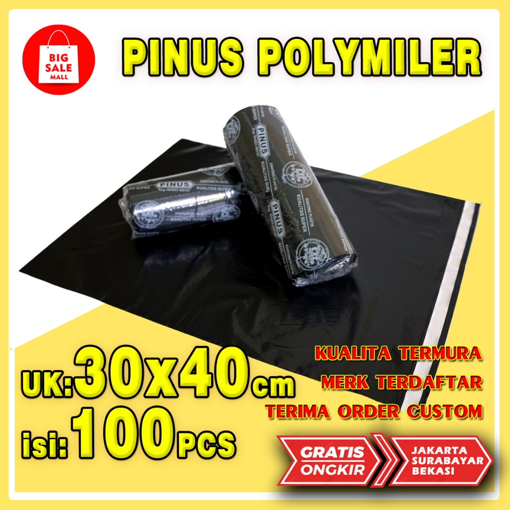 Plastik Packing Polymailer 30X40CM isi100pcs HITAM PINUS EKONOMIS